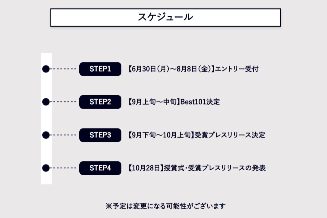 一次審査を通過し、最終審査に進出するプレスリリース101件は「Best101」として、9月中旬~下旬に審査員の講評とともに特設サイト等で掲載します(詳細後述)。