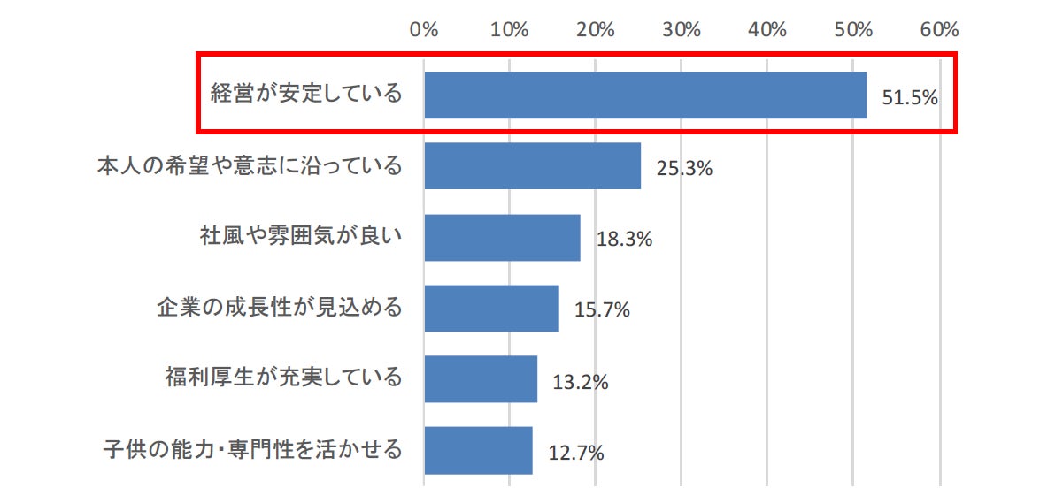 - 子どもの就職先への希望「経営が安定」が半数以上。働いてほしい会社1位は「公務員」【図2、3、4】
