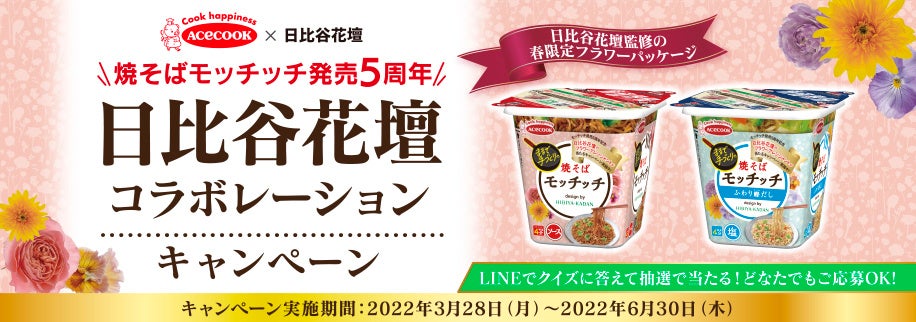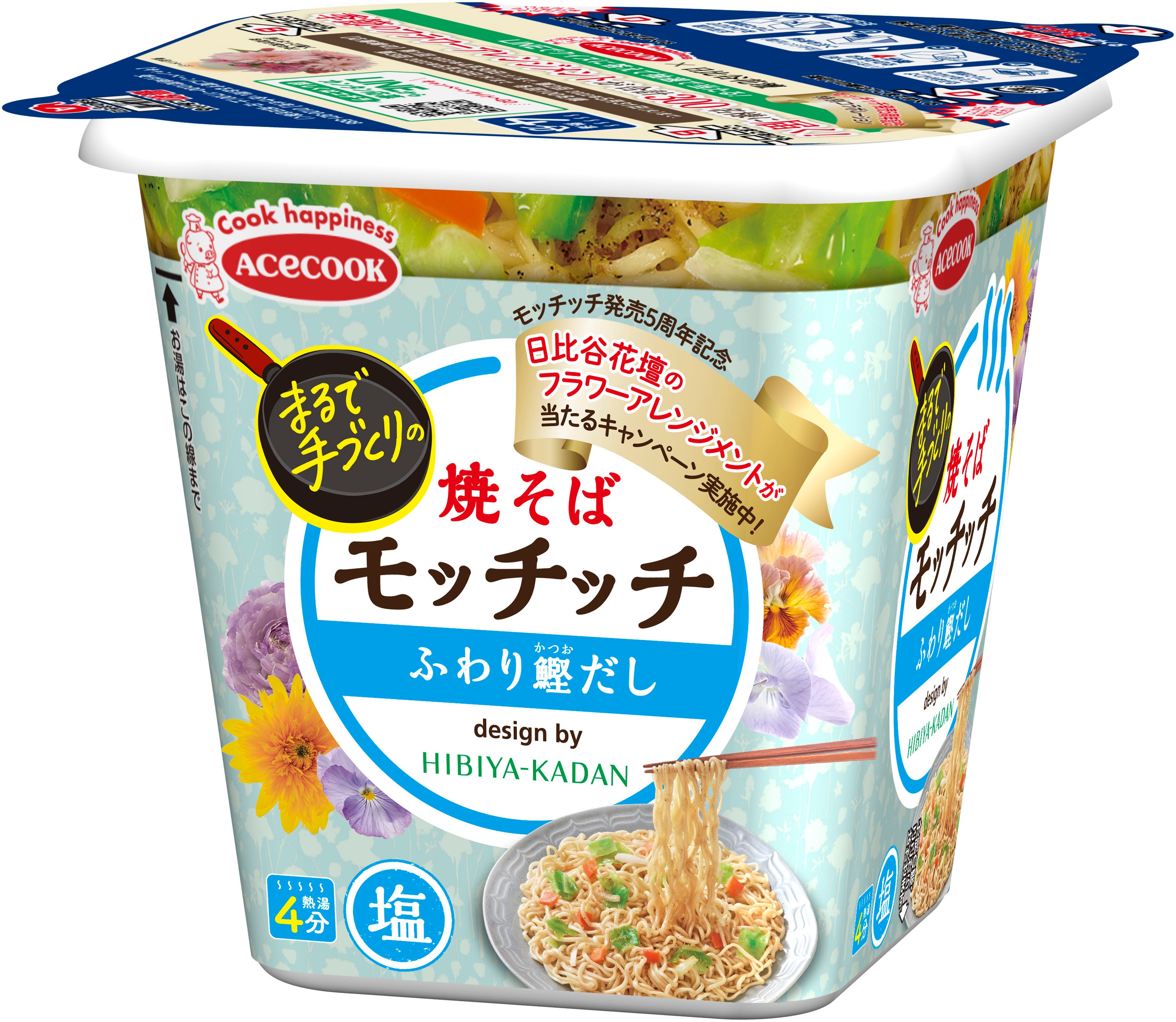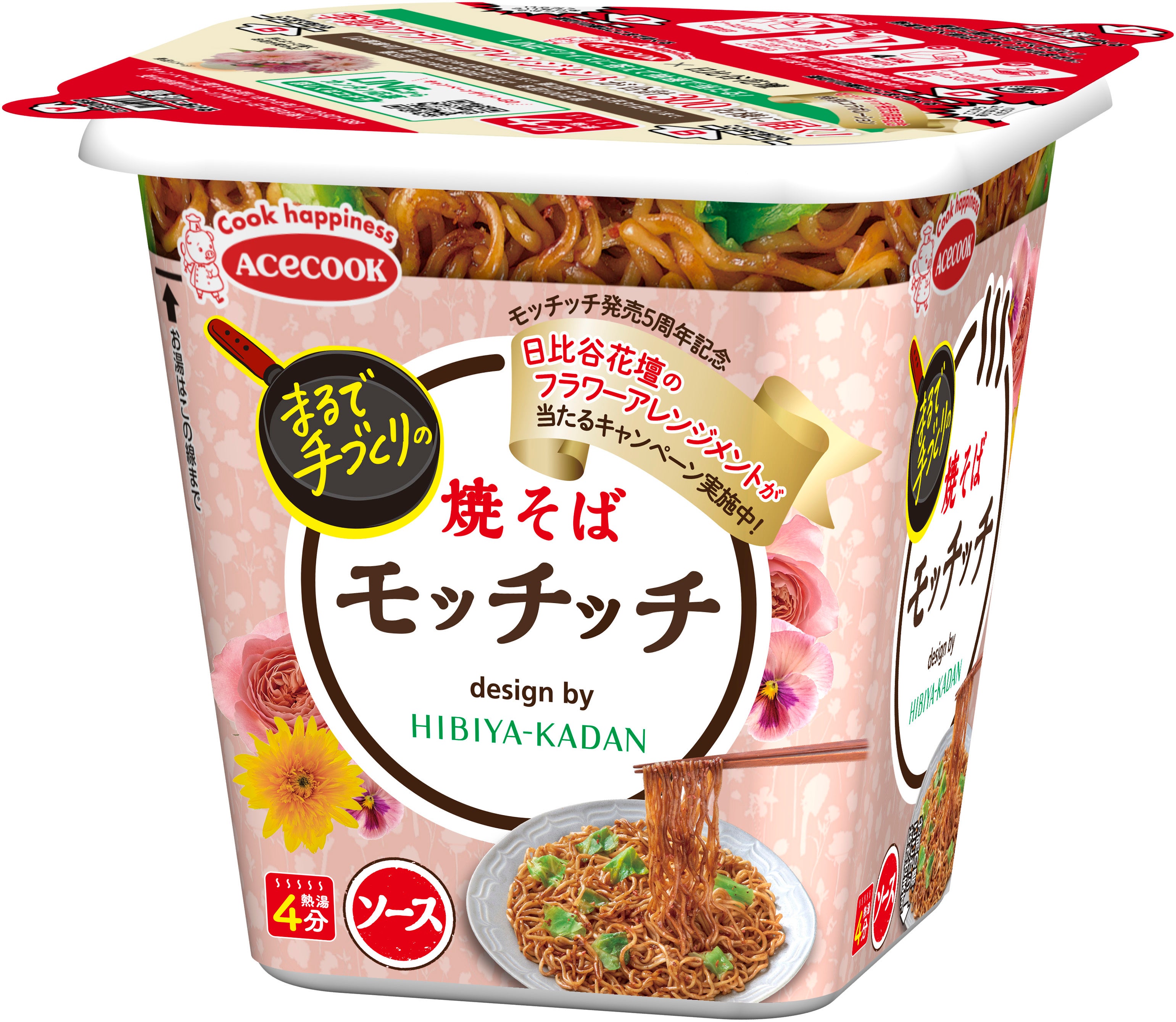 エースコック株式会社(本社:大阪府吹田市 社長:村岡寛)では、「焼そばモッチッチ」と株式会社日比谷花壇(本社:東京都港区)がコラボレーションした【焼そばモッチッチ発売5周年記念!日比谷花壇コラボレーションキャンペーン】を開始させて頂く運びとなりましたので、ご案内申し上げます。