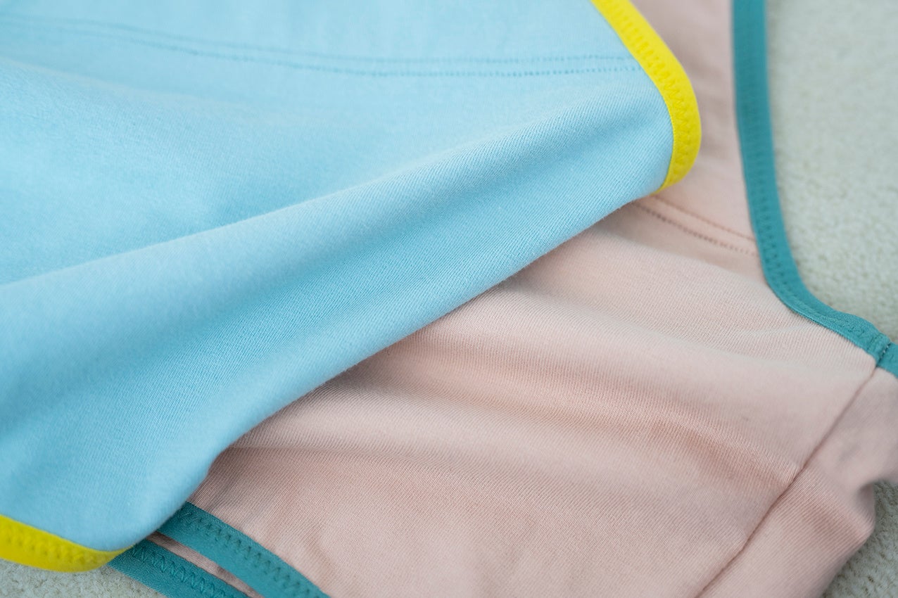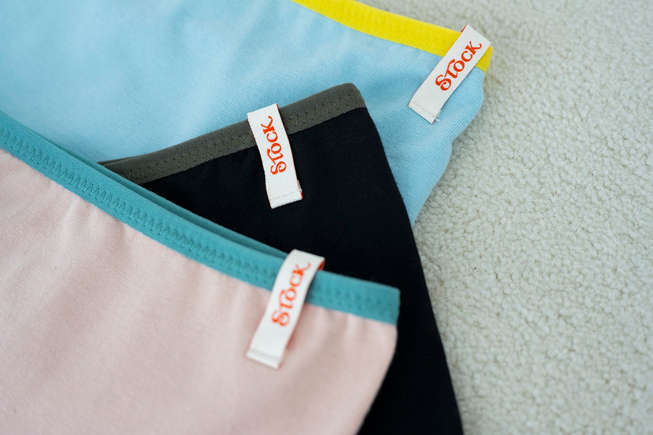 STOCKらしいハッピーでキュートなバイカラーに、安心の4層構造、肌に優しいコットン素材、つけ置き後洗濯機洗いOKな手入れのしやすさなど、吸水ショーツを使用するのが初めての方にもおすすめのアイテムです。