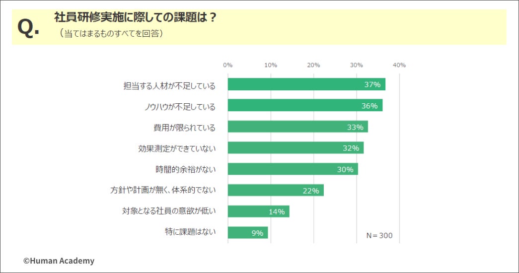 ヒューマンアカデミー 人事・社員研修に関する課題を分析 「研修に課題はない」企業はわずか9%