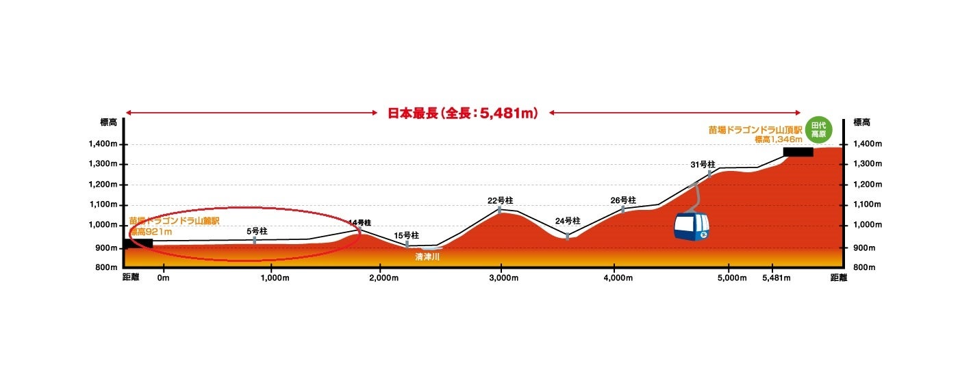 【標 高】山麓駅:921m、山頂駅:1,346m ※状況により、運行内容を変更する場合がございます。