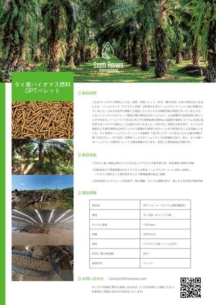 アブラヤシの幹(パームトランク)やソルガムを原料とした環境に優しいバイオマス燃料をご紹介しています。化石燃料に比べCO2排出量を大幅に削減し、持続可能なエネルギーソリューションを提供します。製品サンプルや活用事例を展示。