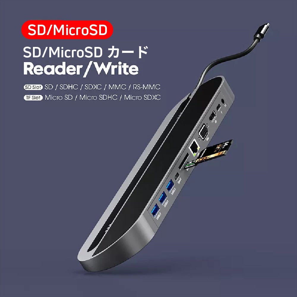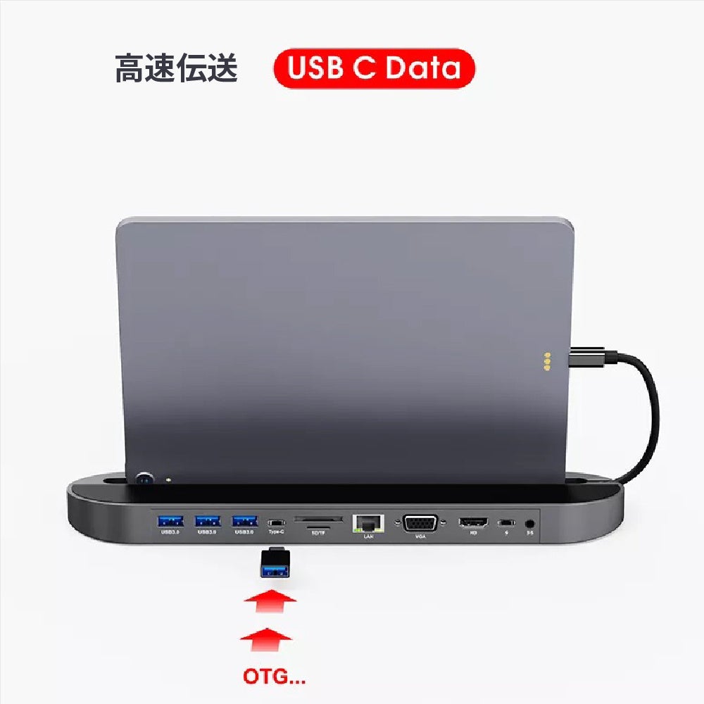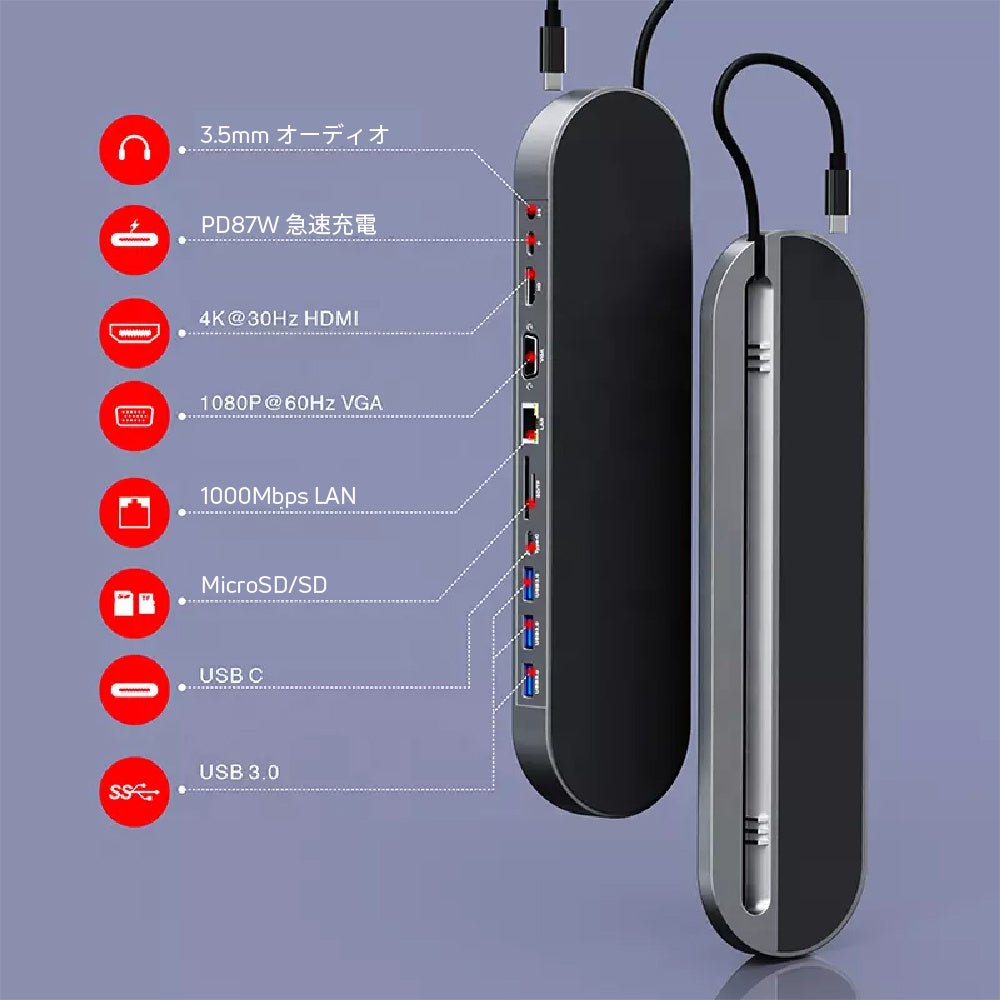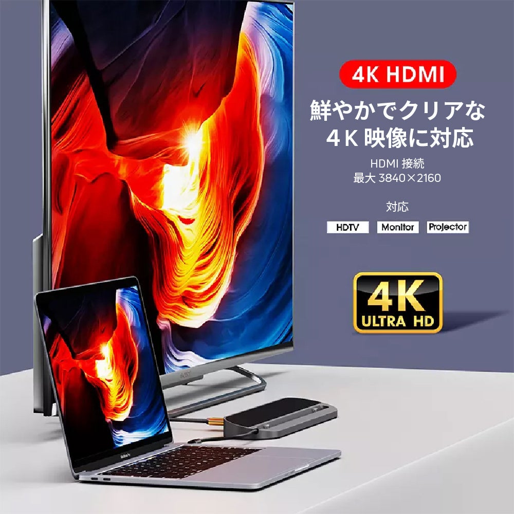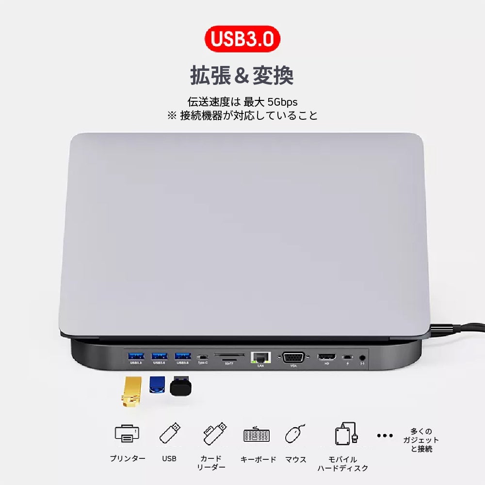 - 11 in 1でマルチ接続ハブ、すっきりスムーズに使える、便利なドッキングステーション