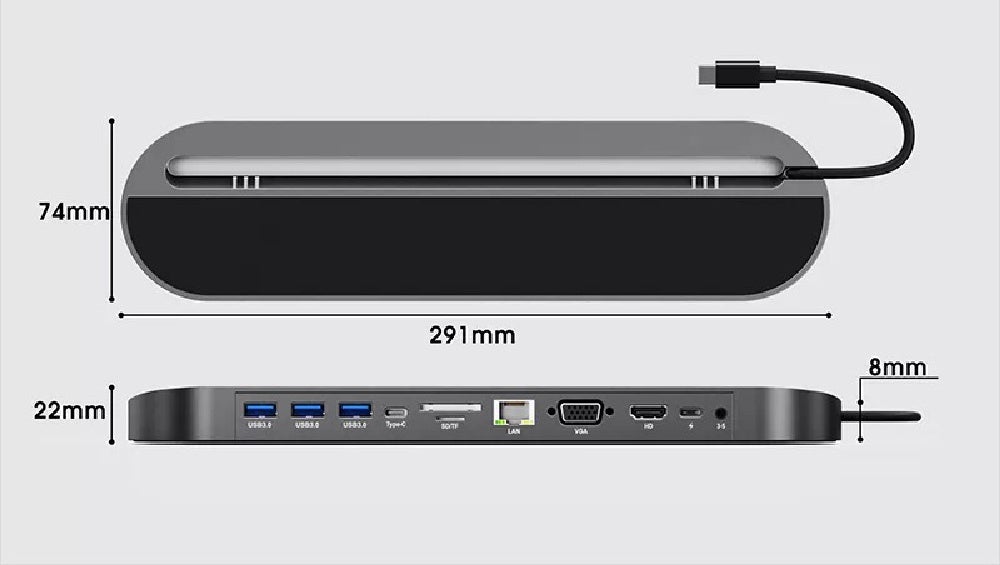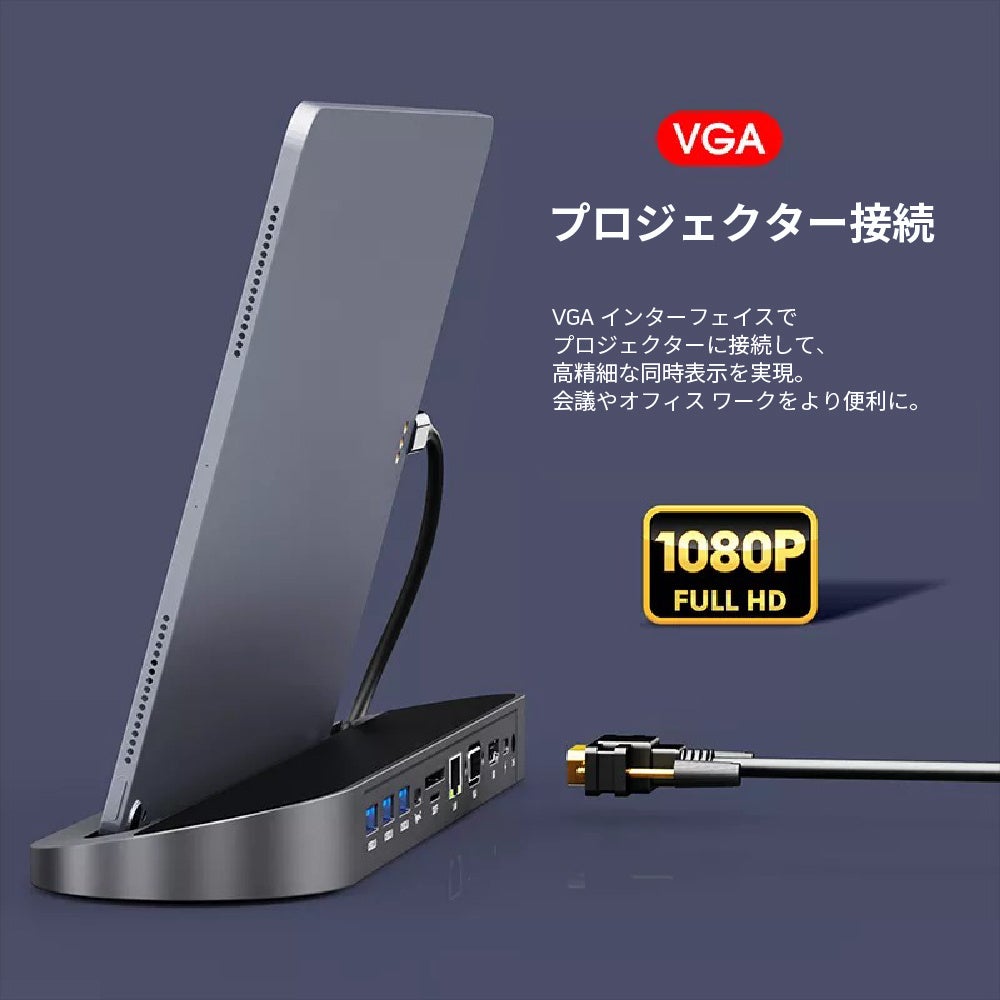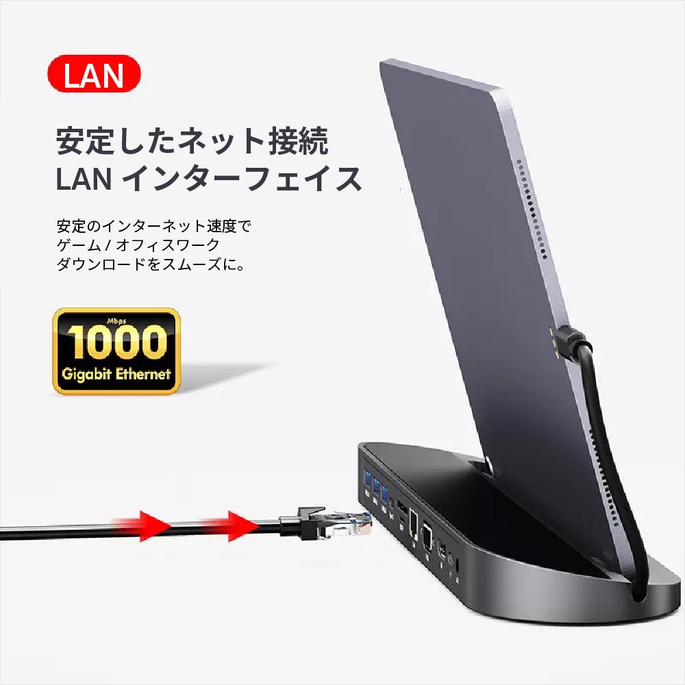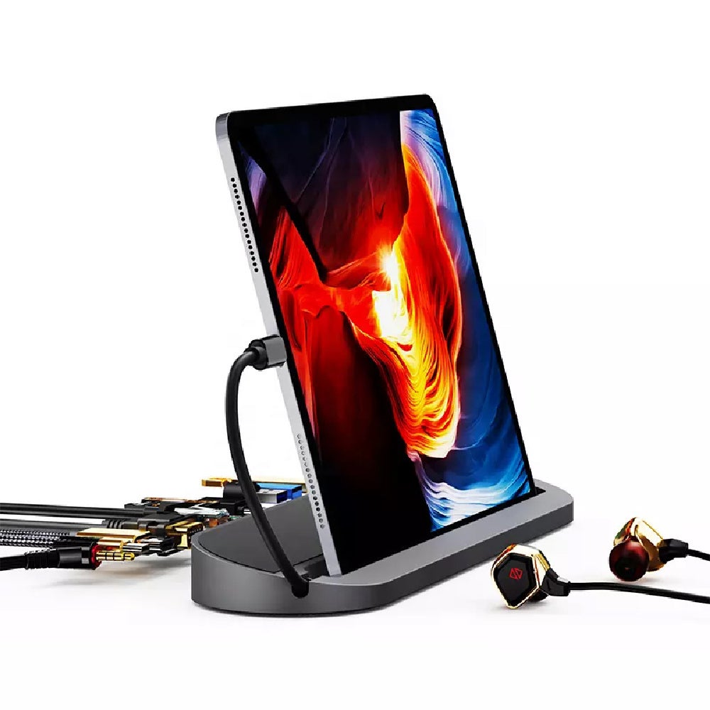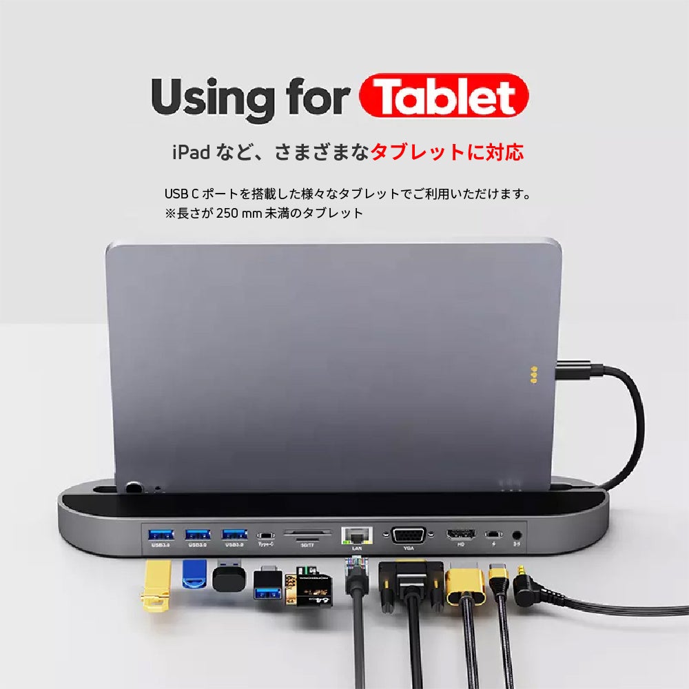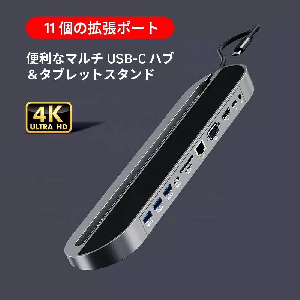 - iPadなどタブレットをスタンドさせて拡張できる、11個のポートを備えたマルチUSB-Cハブ