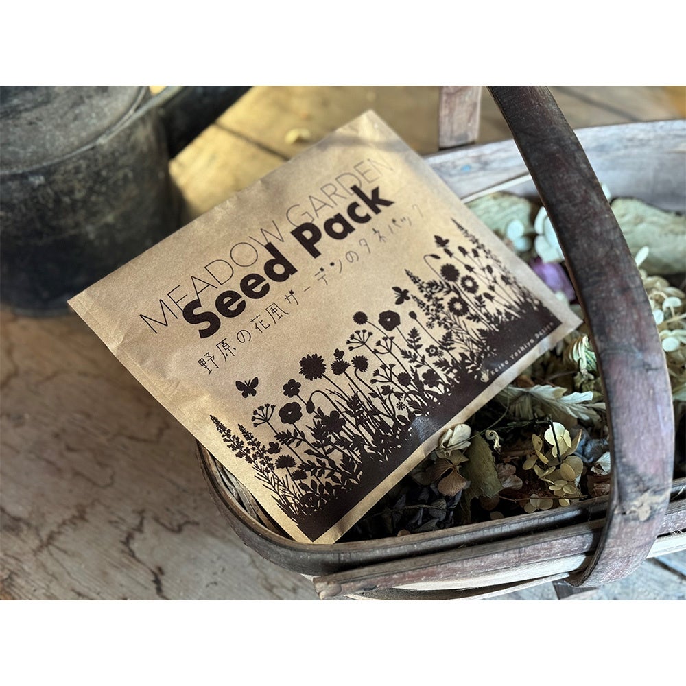 吉谷さんに春と秋の開花期が異なる様々な花の形のタネをセレクトしていただきました。 鉢やプランター、土の上において水をかけるだけで完成します。 まるで草原のような景色を意味するメドウガーデンをイメージした花が、混ざり合って次々と咲きます。春に播けばその年の春から秋まで、秋に播けば、翌年の春から秋まで異なる植物をずっと楽しめます。どの花がどれだけ咲くかは、設置場所の気候や日当たり、乾燥状態などの環境により変わります。21種類の種のパックで、どれが咲くかは、日々の成長の中でお楽しみください。