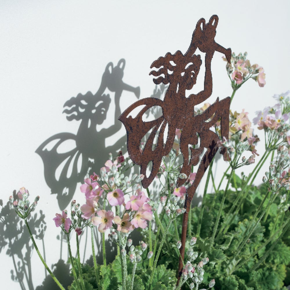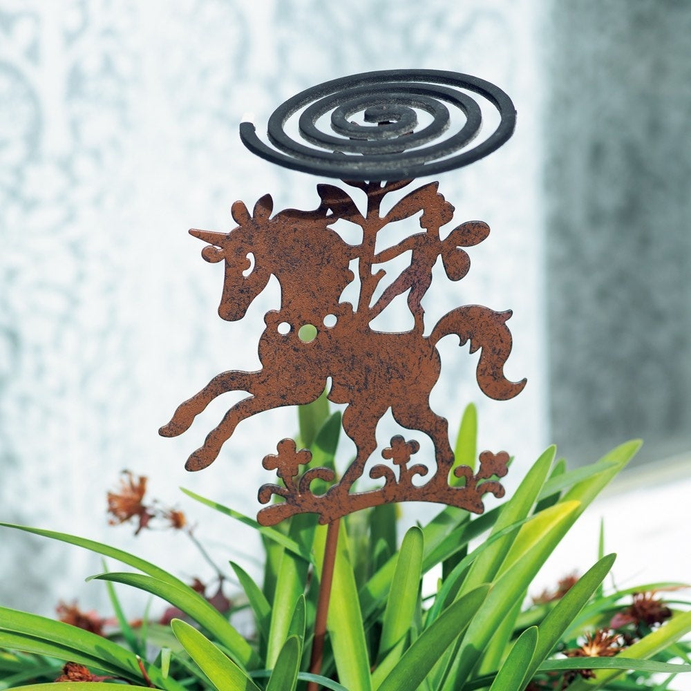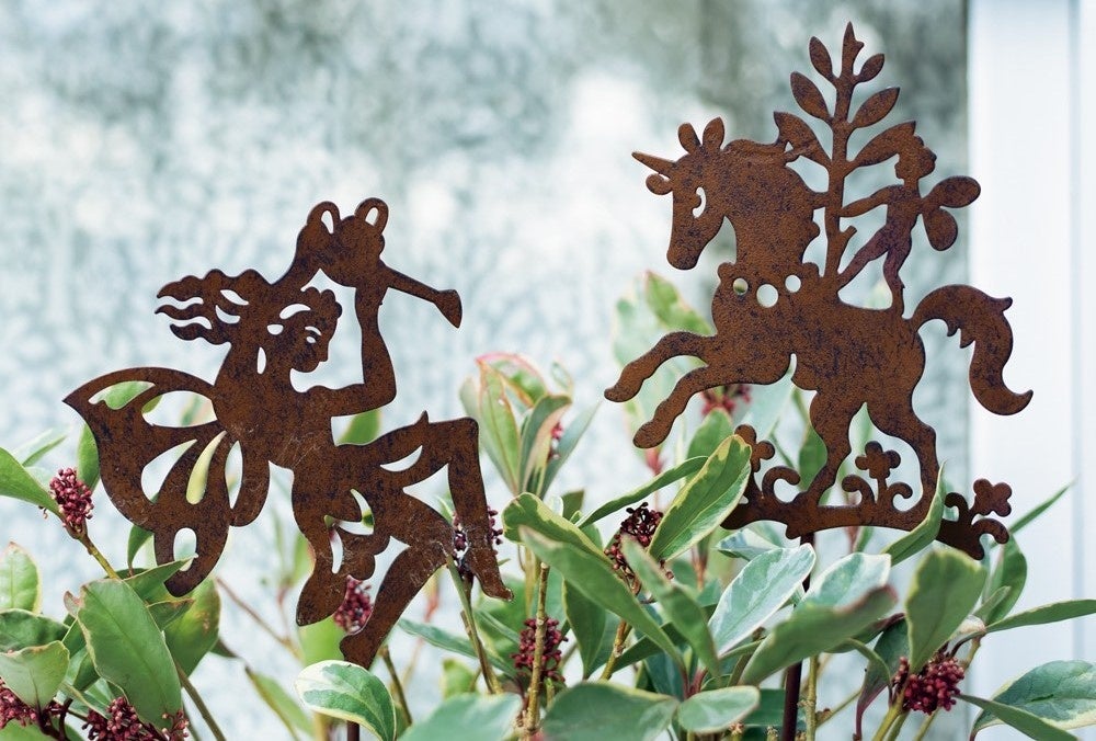 「自然と共に生きる」という吉谷さんのライフスタイルを象徴する妖精&ユニコーンをモチーフにしたガーデンピックです。ユニコーン先端部には蚊取り線香を挿入可能で、蚊除けにも利用できます。