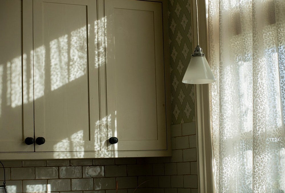 季節を問わず朝から夕方まで室内でも木漏れ日を感じるレースカーテン