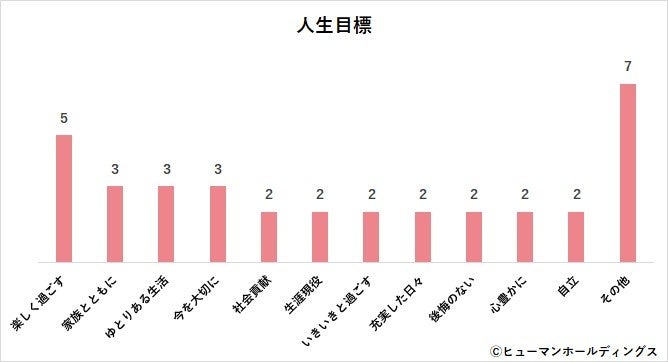 次いで【後進の育成】系目標が挙げられ、「蓄積してきたノウハウを後輩に伝えていく」「部下の育成・次席者の育成」「自身の持つ知識などを少しでも多く次世代の社員に引き継ぎ、会社全体の利益向上につなげる」など、これまでの知見やノウハウを伝承し、定年を前に次世代の育成が自身の役割だと感じている様子も垣間見えます。