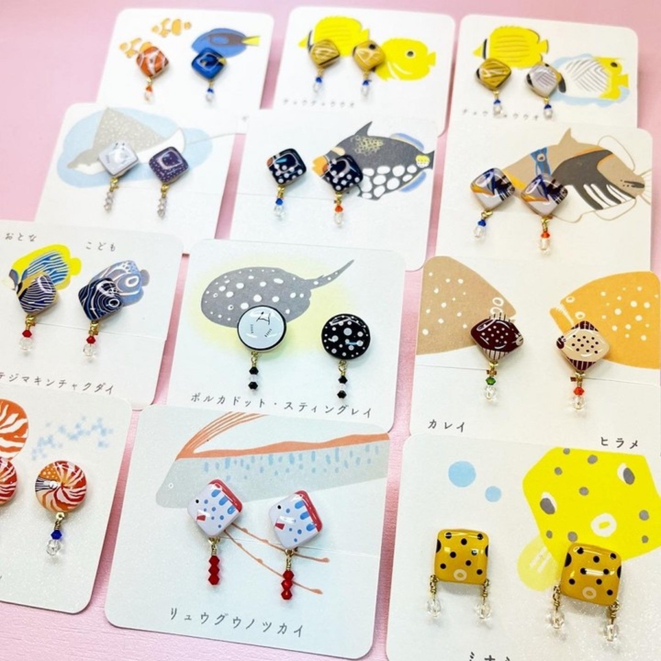 福岡県出身・大阪府在住。元水族館飼育員。大学時代に魚類学を学んでいたこともあり、魚を中心に海のいきものモチーフの雑貨を制作・販売しています。主にプラバン、レジン、粘土を使用。イラストも描きます。奇抜な模様の魚、おもしろい形の魚が特に好きで、その容姿からヒントを得て作品にしています。「こんな生き物がいるんだ!」と、私の作品がみなさまの新たな発見につながりますと嬉しいです。