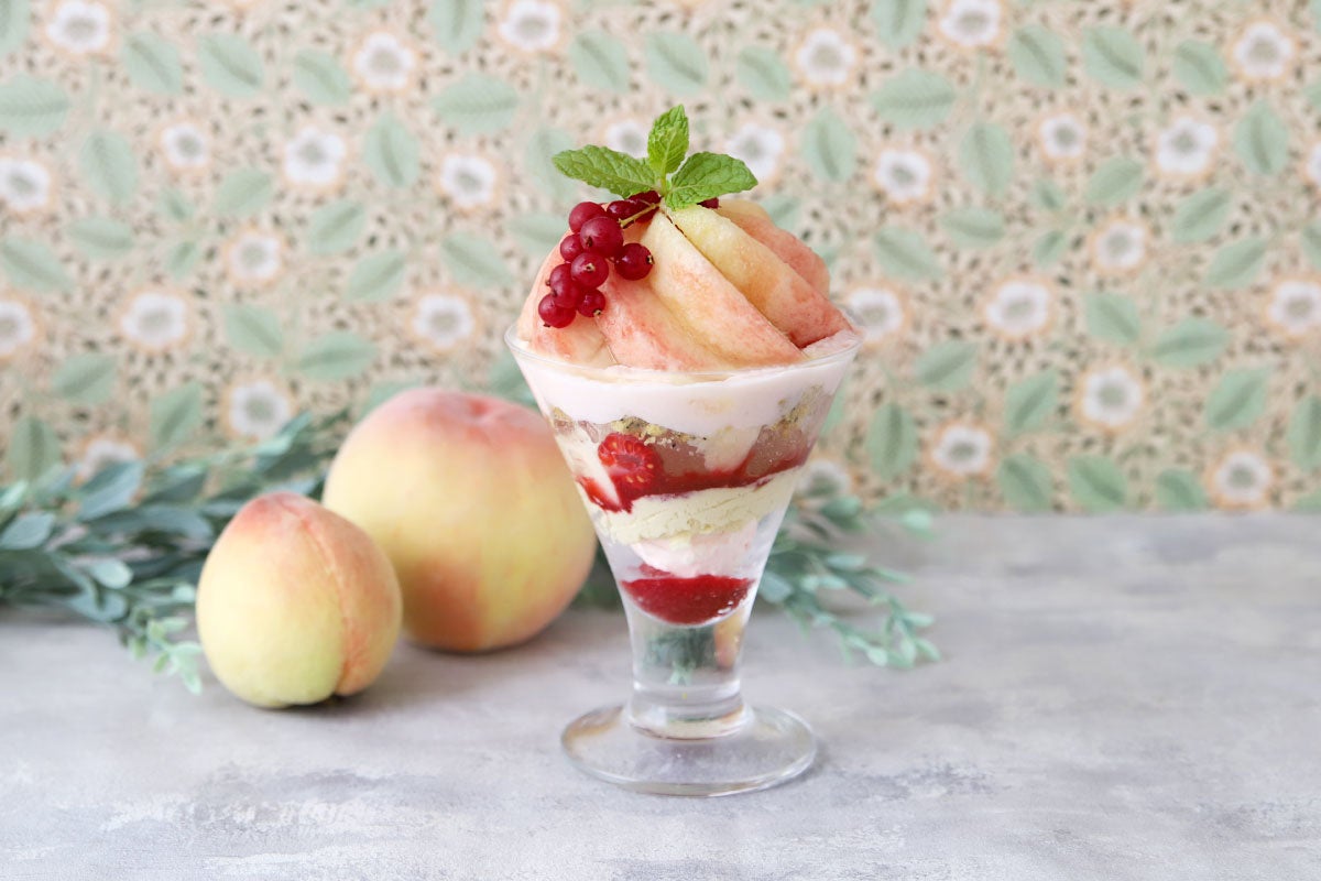 アフタヌーンティーセット限定でご用意していた「白桃のミニパルフェ」が通常サイズになってお楽しみいただけるようになりました。