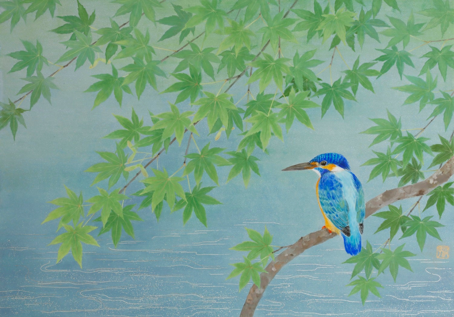 M15 雲肌麻紙、岩絵具、水干絵具、墨、膠、箔、截金