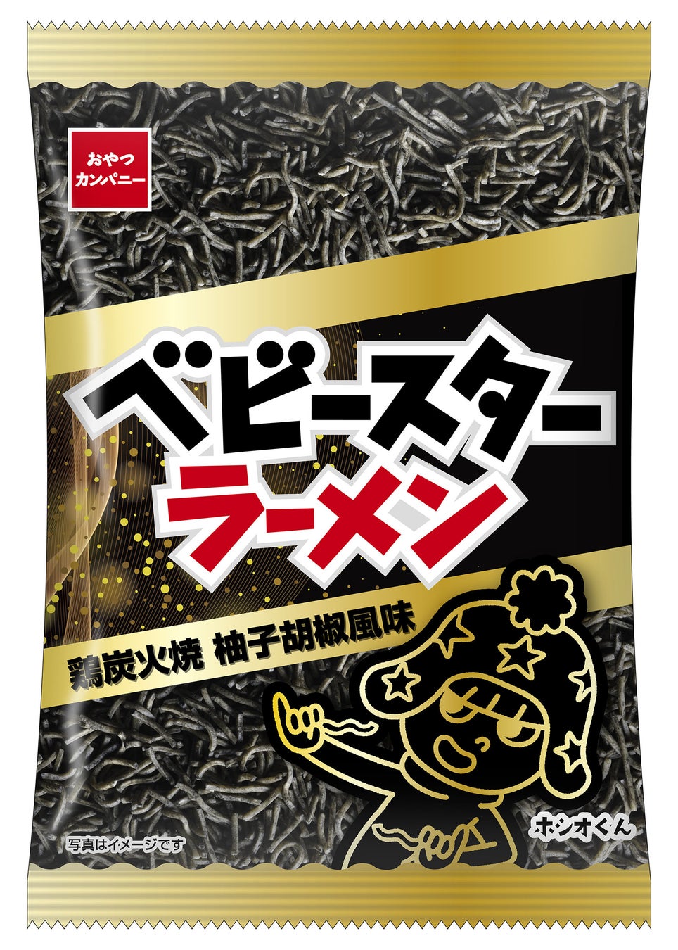 アミューズメント専用商品初!(※) ベビースターが真っ黒に! 「ベビースターラーメン 鶏炭火焼 柚子胡椒風味」が11月14日(木)よりナムコ限定で登場!