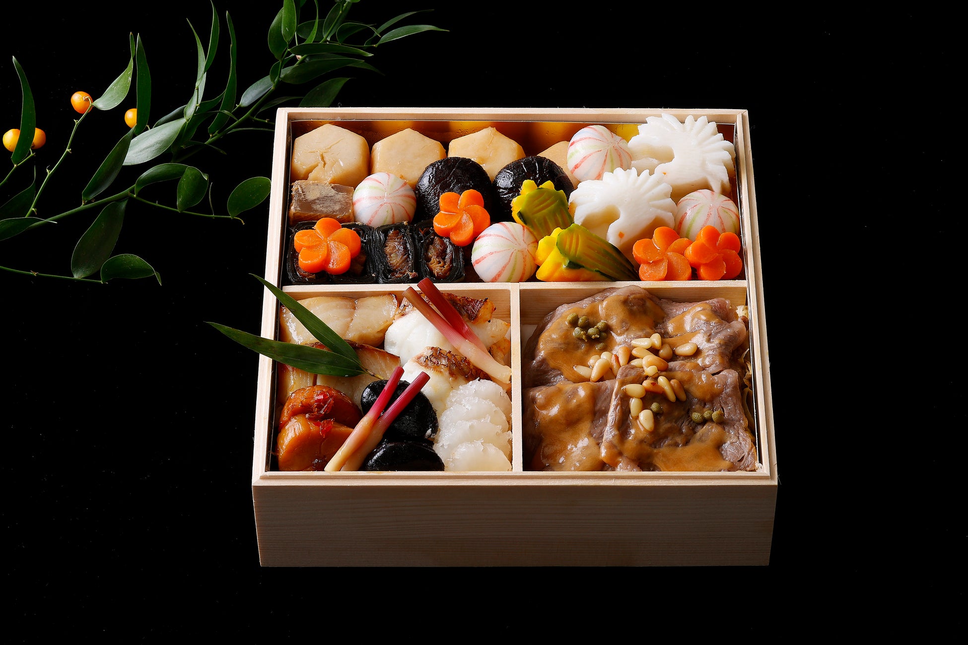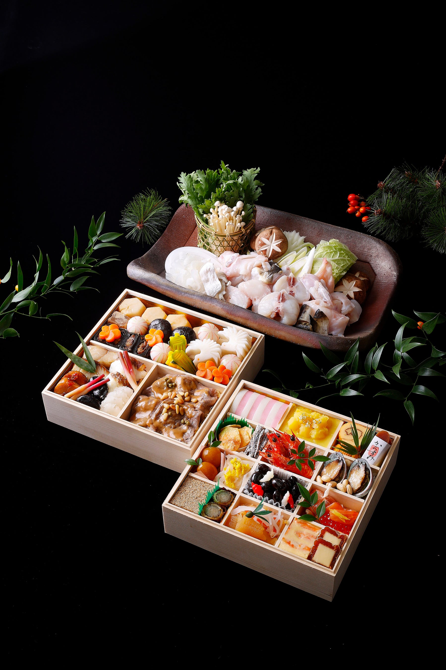 ホテルならではの繊細な匠の技を感じていただける本格的なおせちと、心身ともに温まる河豚鍋を囲みながら、新しい年の幕開けを祝う特別な時間にふさわしい三段重です。