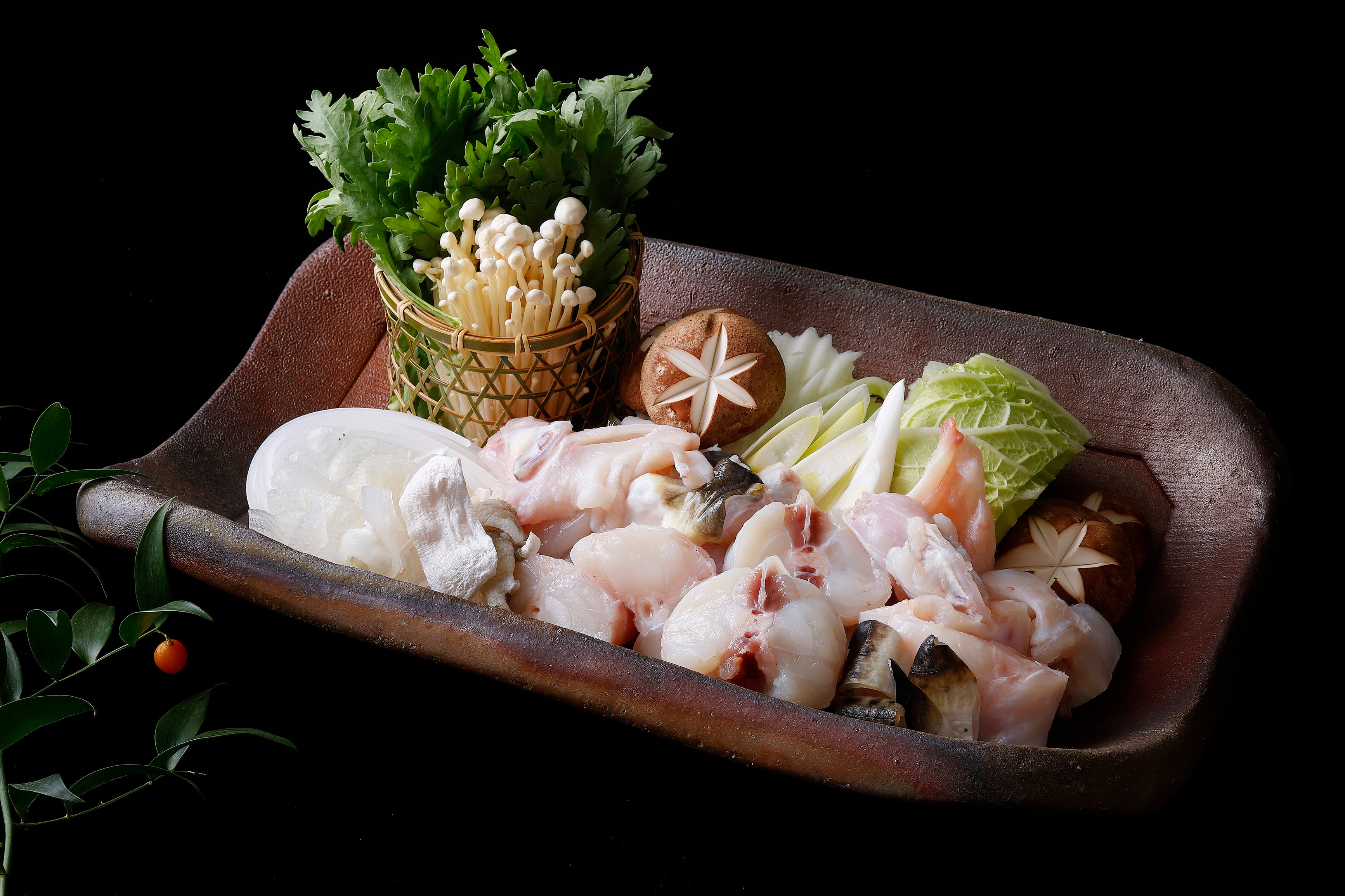 壱の重には、しっかりと時間をかけて丁寧に炊き上げる丹波の黒豆をはじめ、職人たちが心を込めて作り上げる伝統的なおせち料理を惜しみなく詰め合わせました。弐の重は、素材の魅力を引き出すために一つひとつ丁寧な手仕事で炊き上げる煮物と焼き物が美しく並びます。参の重には、身の透明感や食感、甘みが上質なとらふぐの中からさらに厳選したものを一尾分、河豚鍋の出汁やたれなどとともに贅沢に盛り合わせました。皆でお祝い料理と鍋を囲みながら喜びに満ちた新年を迎えられるよう、4名様分を三段重に詰め合わせてご用意いたします。