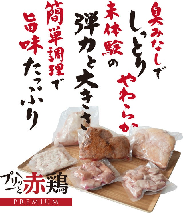 今回は、鹿児島県出水市にある赤鶏農業協同組合の「がんこ赤鶏」を特許取得の加熱製法で仕立てた新商品「プリッと赤鶏PREMIUM」を販売いたします。