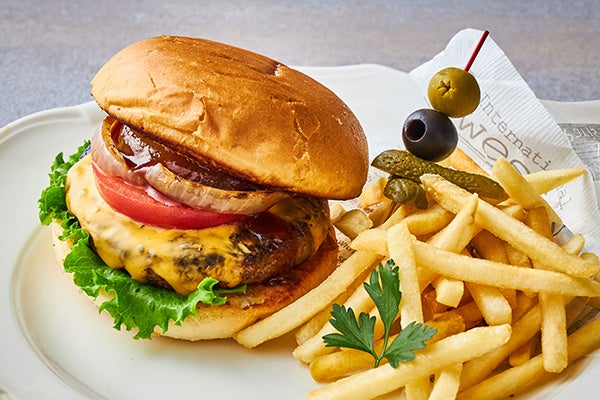 長崎県佐世保市のご当地グルメ“佐世保バーガー”をイメージした一品は、肉厚でジューシーなパテにチーズ、トマト、玉ねぎを重ね、スモーキーな香りがする特製ソースをかけてオリジナルテイストにしてご提供いたします。