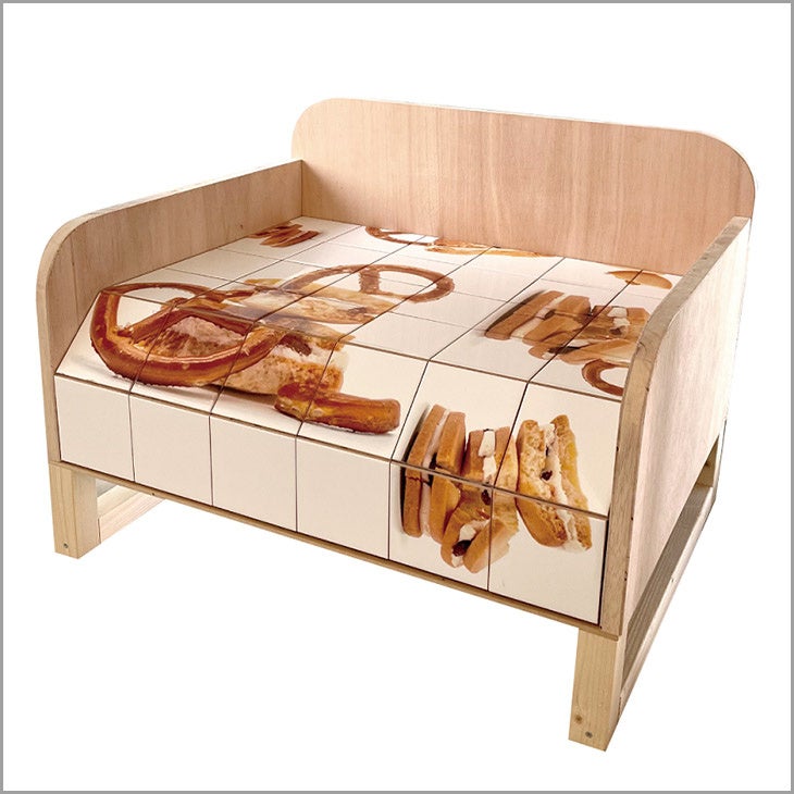 [作品名]cookie食べ物の写真を撮影し、焼き付けたタイルを使ったオブジェクト。