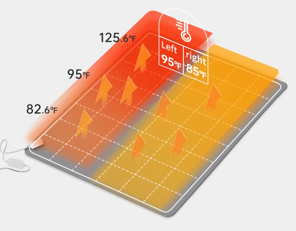 恒温モード:デフォルトでは、起動後に恒温モードに入り、ユーザーは自分の感覚で電気毛布のギアを調整できます。(高温域:52°C、中温域:35°C、低温域:28℃)