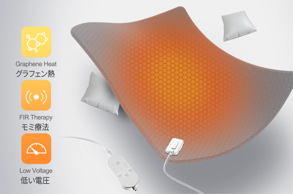 GeeBlanket(ジーブランケット)は、布団の中全体を暖め、全身を暖めることができる電気毛布です。