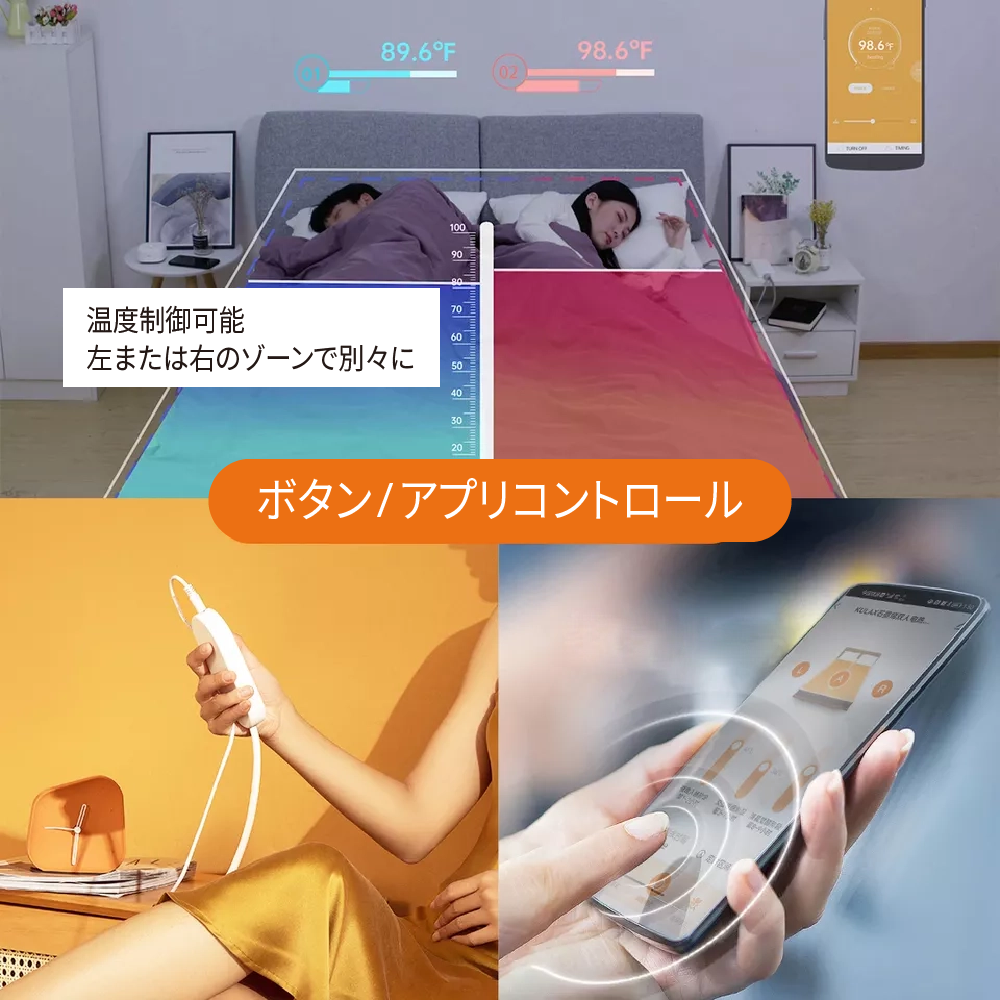 ベッドの温度を左右で異なる温度設定が可能です。 暑がりな人と寒がりな人で体感温度が違うため、ご自身に合った最適な温度に設定ができます。
