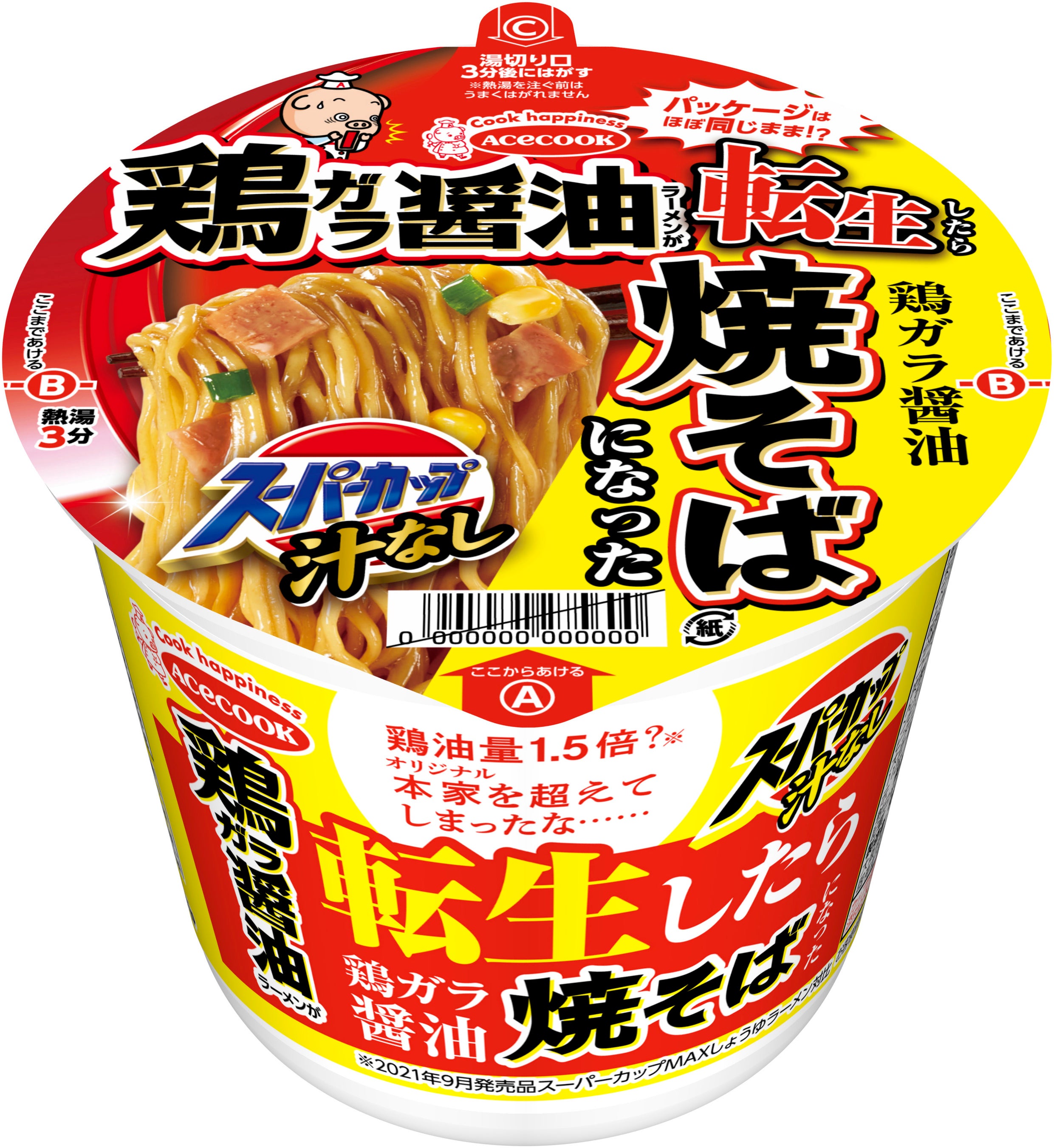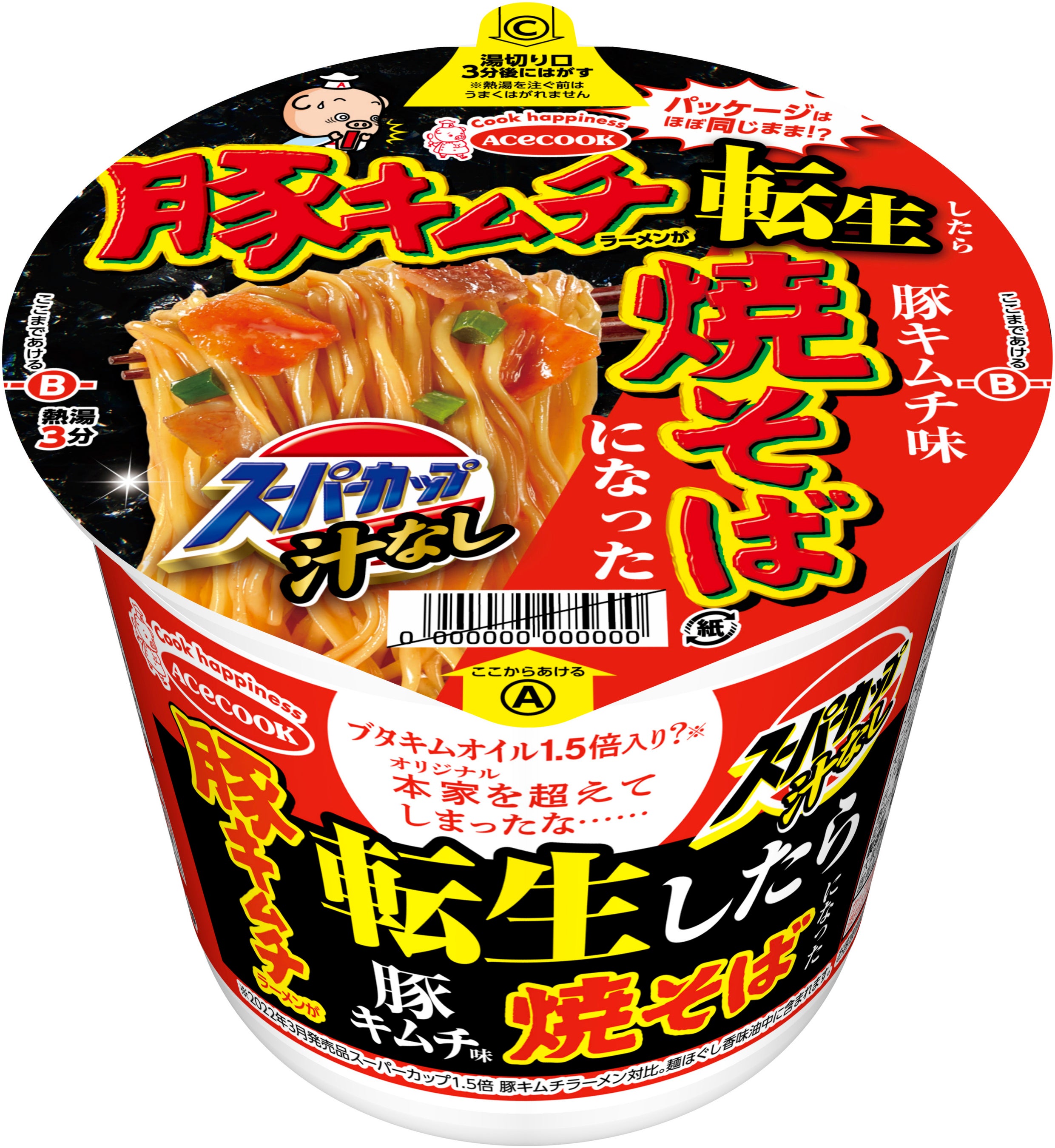 エースコック株式会社(本社:大阪府吹田市 社長:村岡寛)は、2022年4月18日より、「スーパーカップしょうゆラーメンが転生したら焼そばになった」[スーパーカップ豚キムチラーメンが転生したら焼そばになった」を新発売します。