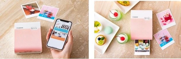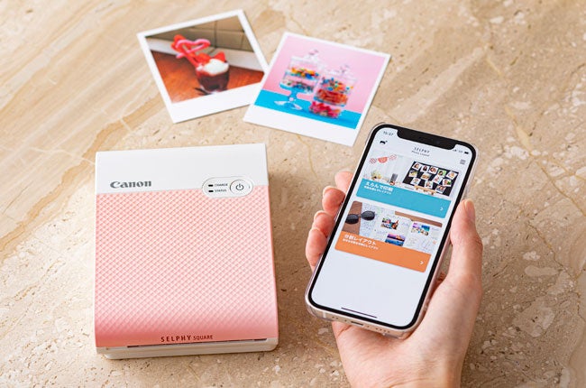 スマホ専用ミニフォトプリンター。持ち運びしやすいサイズ、Wi-Fi接続でスマホの写真をダイレクトにプリント可能、高画質で美しさが長持ちするのが特長。プリントはおしゃれなスクエアフォーマットで、全面シールタイプ。