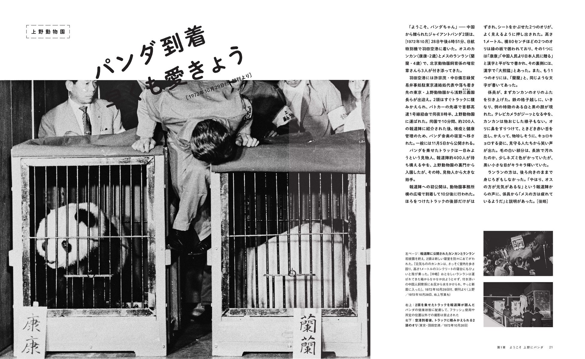写真だけではなく、読み物も充実。カンカン&ランラン来日時に上野動物園の飼育課に在籍していた獣医師の成島悦雄さんや王子動物園元園長・大久保建雄さん、アドベンチャーワールド副園長・中尾建子さんなど、パンダに長くかかわってきた方々の寄稿文やインタビューを収録しました。