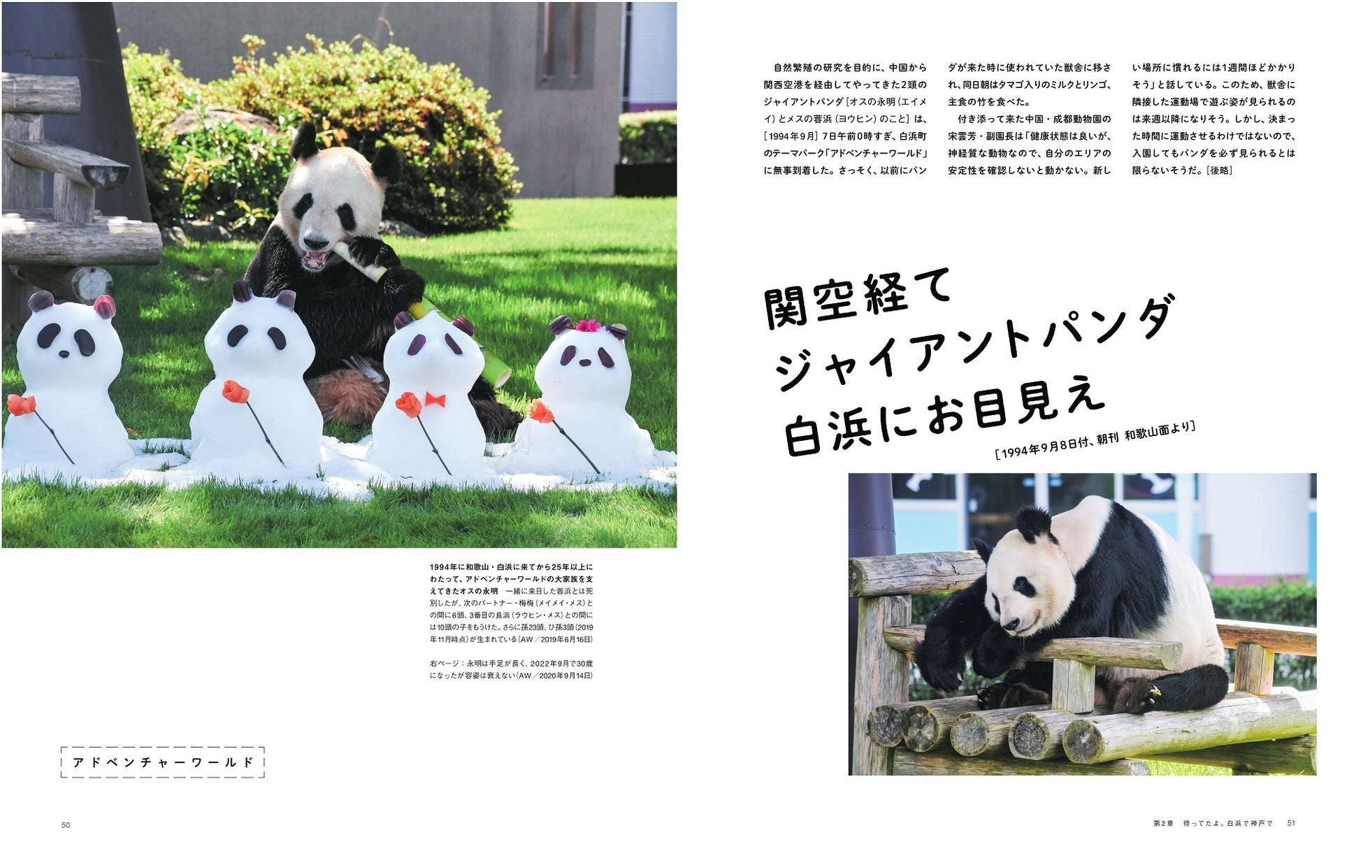 本書は、当時の報道写真と記事を中心にパンダヒストリー50年をたどるメモリアル・フォトブックです。上野動物園の歴代パンダたちのほか、本書のために撮りおろした和歌山・アドベンチャーワールドのパンダファミリーや王子動物園のタンタンの写真もたっぷり収録しました。