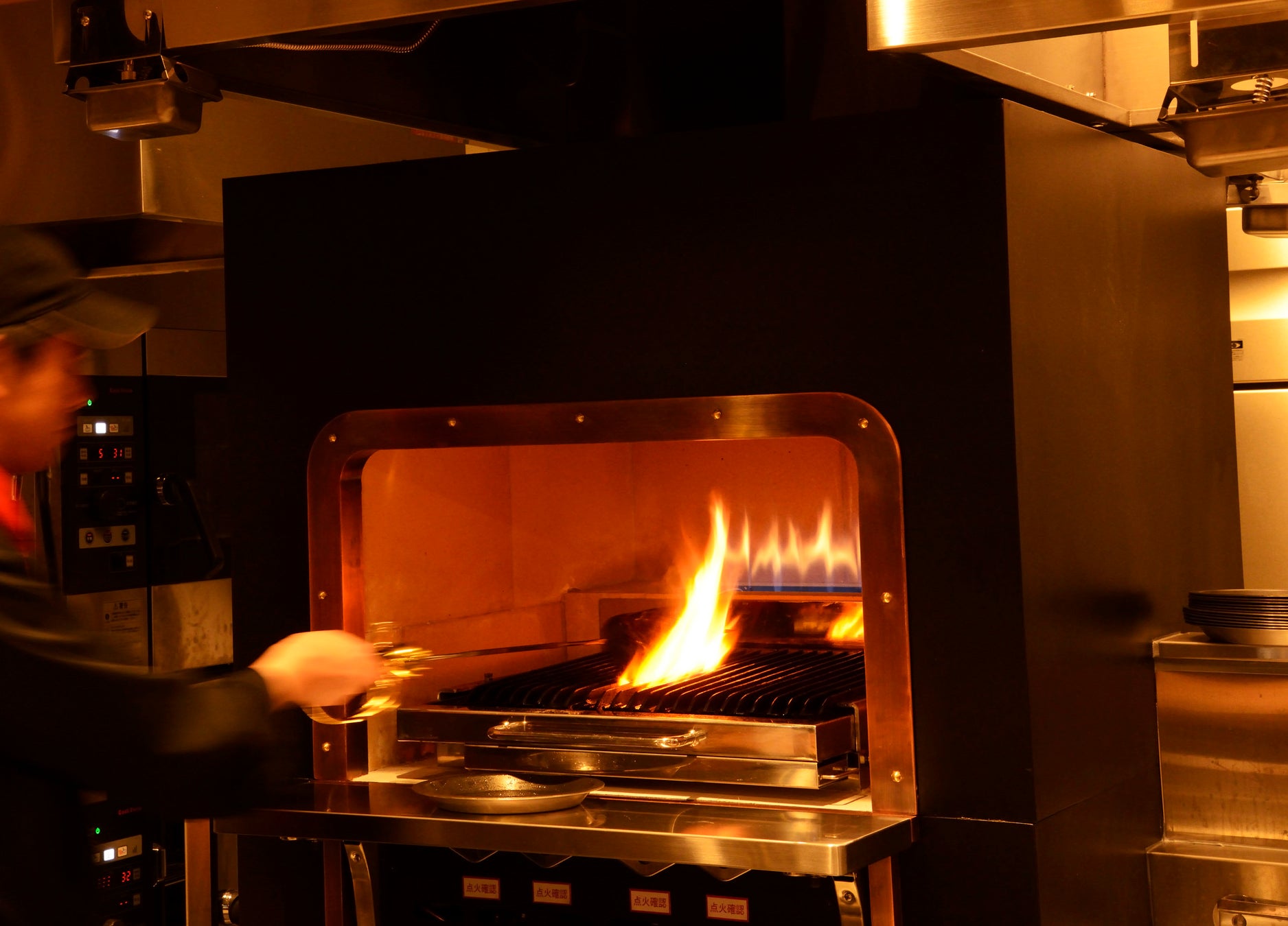 ※グリル機「Lavarock」・・・Lavarockとは溶岩石の意味で、その名の通り、炉内で加熱した溶岩石で料理を焼き上げるグリル機です。溶岩石の遠赤効果と高温になった炉内で加熱することで、素材のうまみを最大限に引き出すことができます。