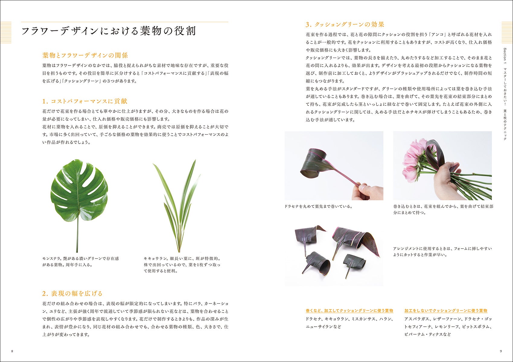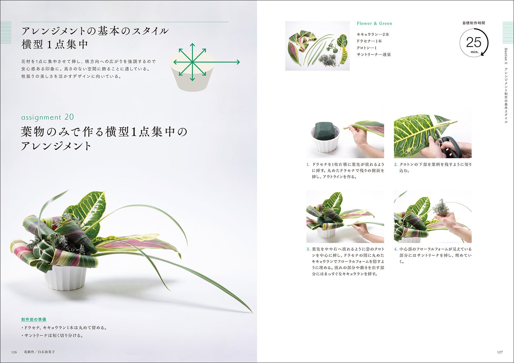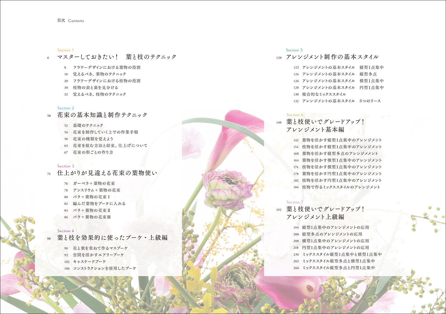 なんとなく花束やアレンジメントが作れるけれど、枝物や葉物をつかってしっかりとしたデザインを作り上げてみたいという人に最適な一冊です。