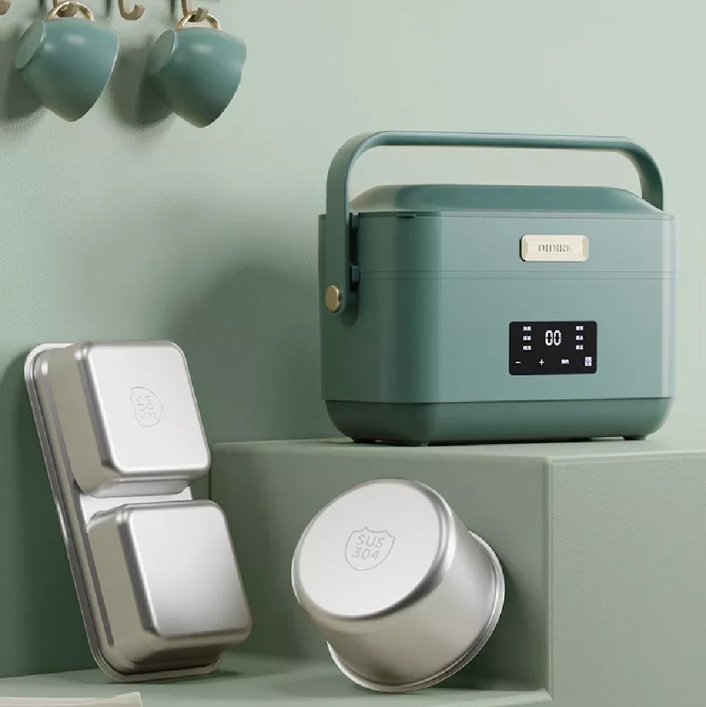 - 持ち運んだ先で、温め/炊飯/おかゆ/煮込みなどができるスマートな電熱お弁当箱