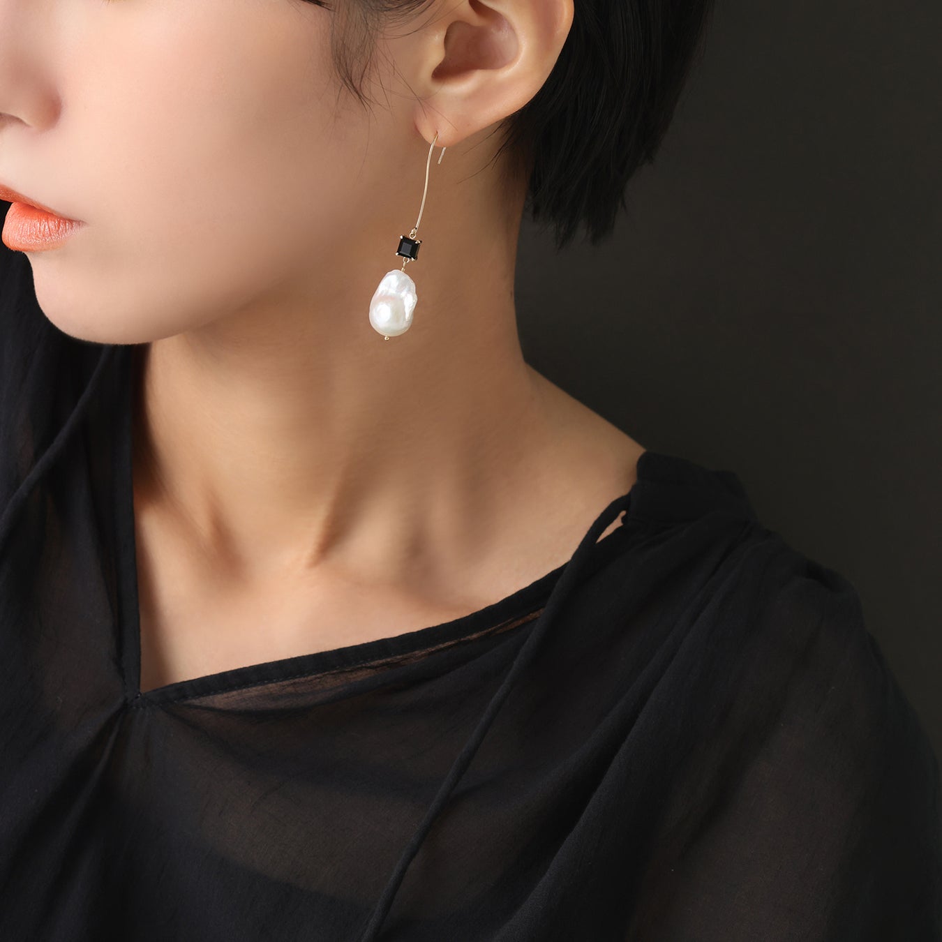 それぞれ個性のあるパールにスクエア型のオニキスを組み合わせ、トレンド感のあるジュエリーに仕上げました。