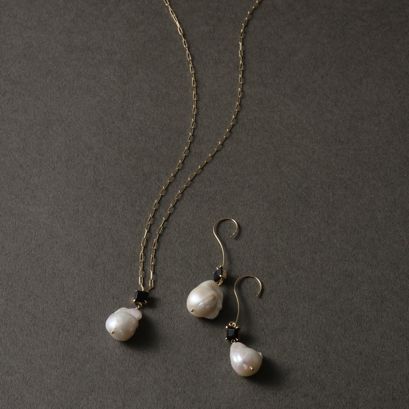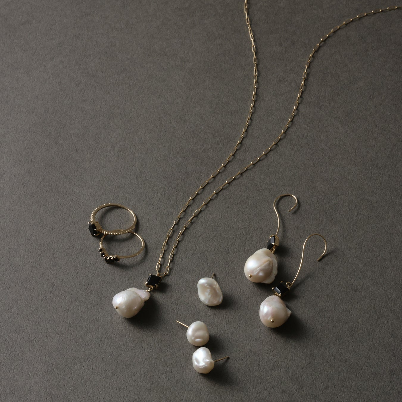 天然ならではのシルエットを活かしたパールとオニキスは、ホワイト×ブラックのコントラストが印象的。