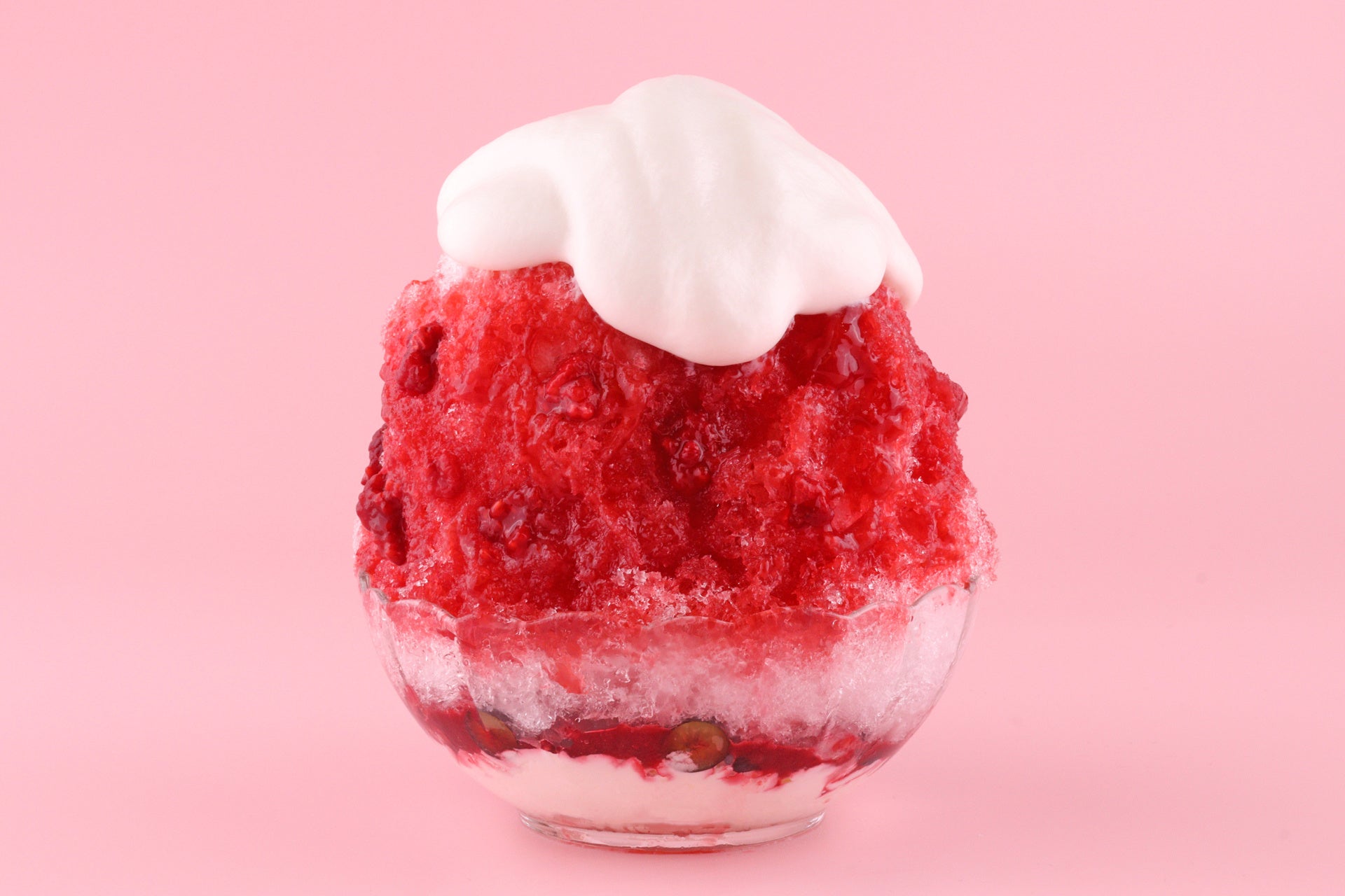 いちご・ラズベリーを使用したムース入りのかき氷。