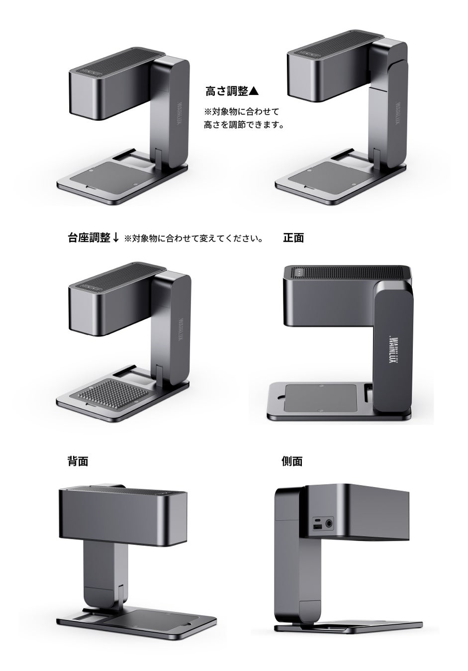およそ卓上に収まる小型ですが、使用時は他のものへ干渉を避けるため、周囲の安全を確認してご利用ください。