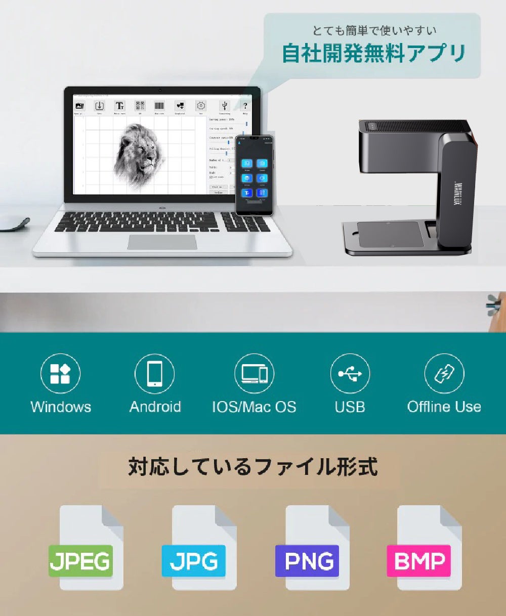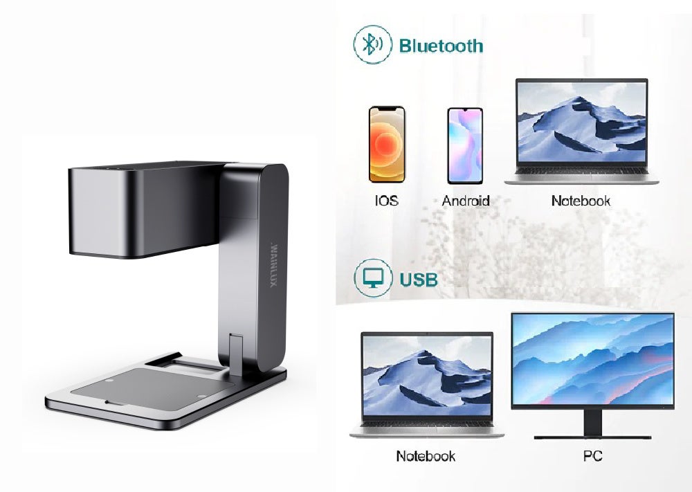 - コンパクトに収納できてスタイリッシュなデザイン、卓上サイズ小型レーザー彫刻機