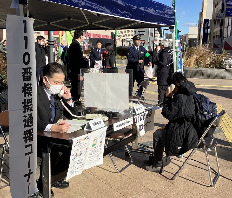 ・防犯注意喚起チラシの配布(300部) ・110番通報の流れを警察署員とともに模擬的に体験できる「110番模擬通話コーナー」の設置 ・警察署員による「防犯相談コーナー」の設置 |