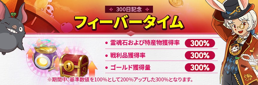 この他、一般フィールドや混沌の地で霊魂石や特産品、戦利品、ゴールドなどの獲得率が300%にアップするフィーバータイムイベントも実施いたします。