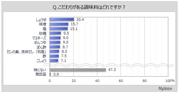 https://myel.myvoice.jp/products/detail.php?product_id=31703 ※上記設問の他に、「調味料に対するこだわり度」も聞いています。 |