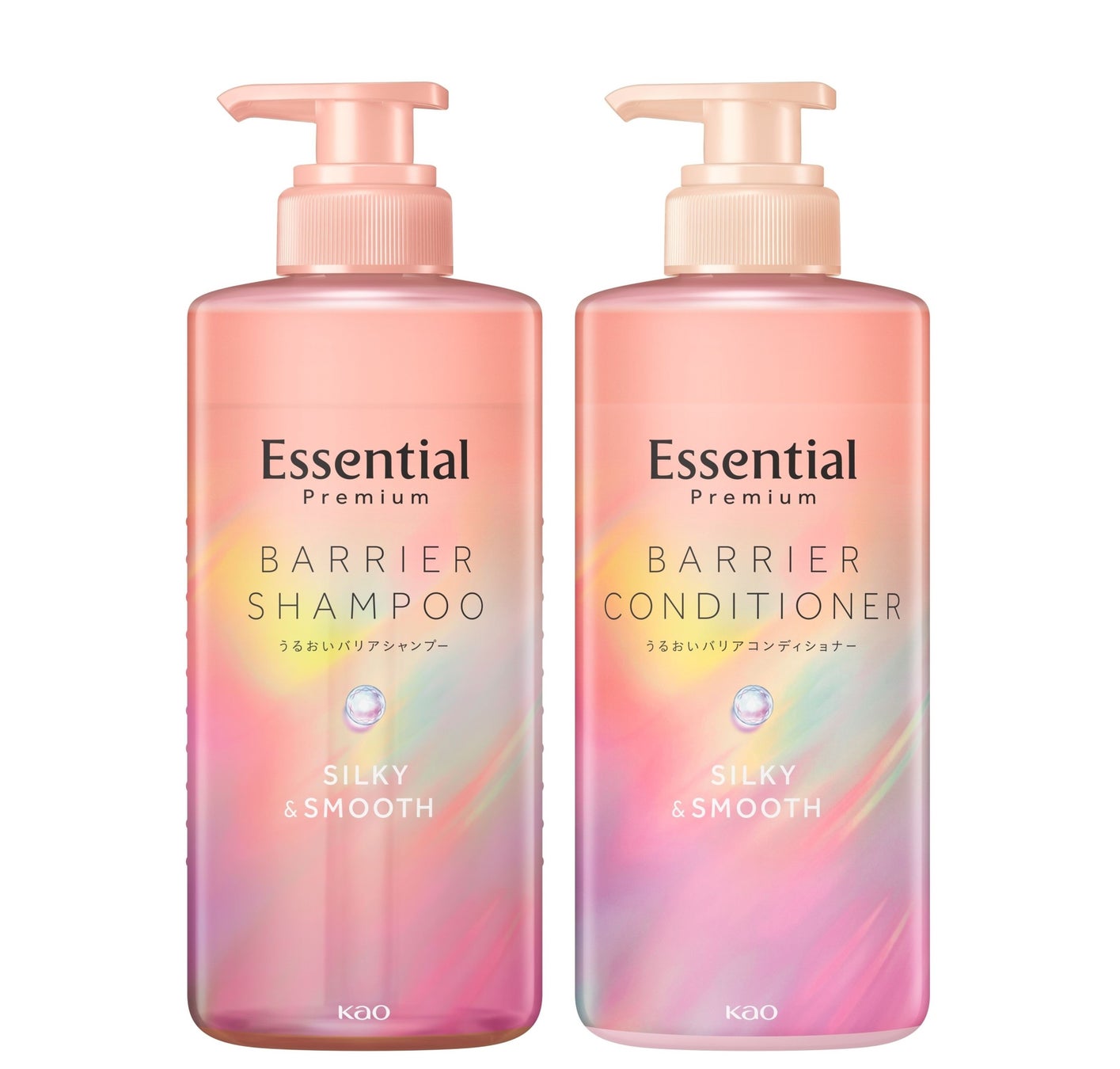 商品ラインアップは、美容のプロにも受け入れ性の高いこだわりの成分が好評の『エッセンシャル プレミアム バリアシャンプー・コンディショナー シルキー&スムース』ペアセットと、「#マーメイド髪水」の愛称で話題となり、ドライヤー速乾効果と感動的な指どおりが特長の『エッセンシャル プレミアム ウォータートリートメント EXスムース』です。