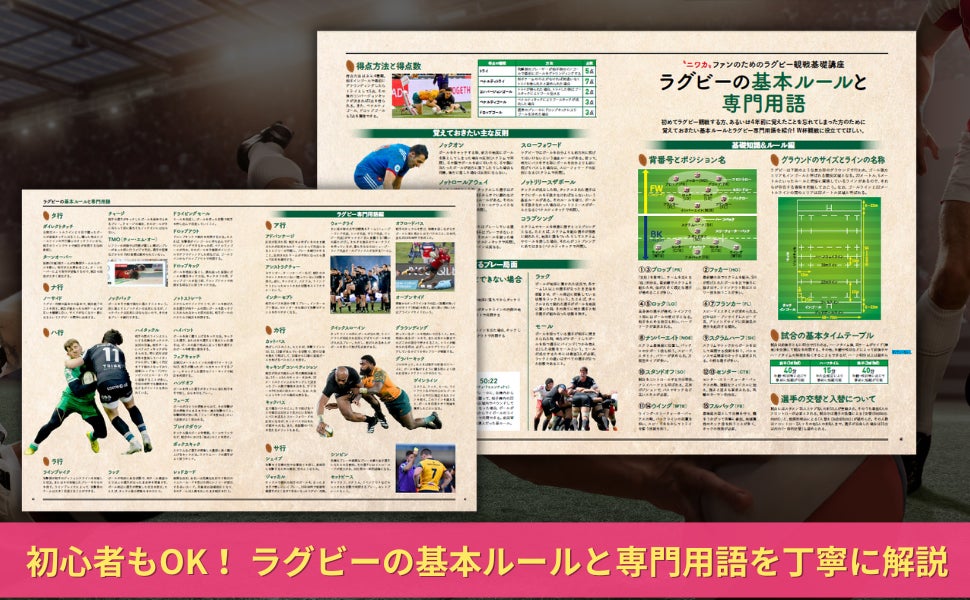 初めてラグビー観戦する方、あるいは4年前に覚えたことを忘れてしまった方のために覚えておきたい基本ルールとラグビー専門用語を丁寧に紹介! 初心者からラグビーファンまで、熱狂観戦できます!!