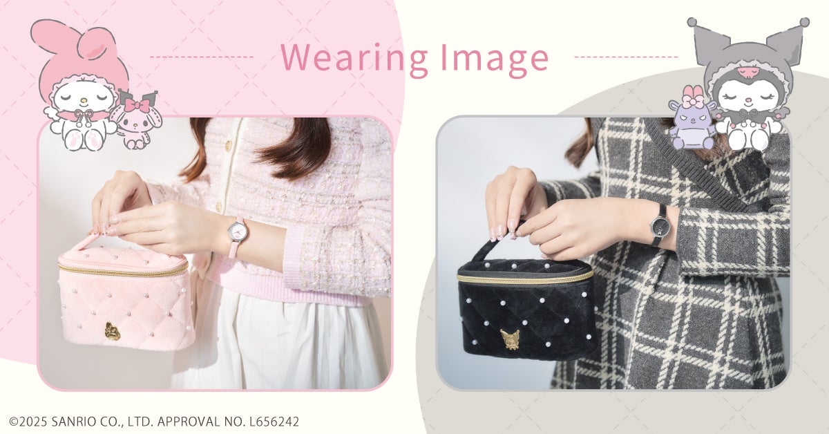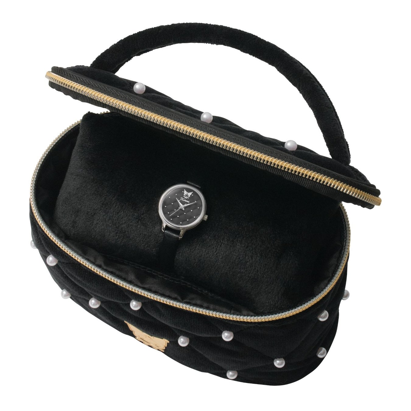時計ボックスの代わりとしてクロミの時計にはクロミの、マイメロディの時計にはマイメロディのふわふわバニティポーチがそれぞれ付属します。