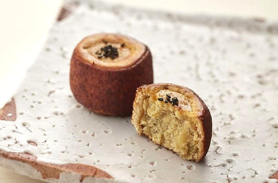 「なると金時」を使い、さつまいもの甘さと食感を活かした一品です。さつまいも餡を包んだ乳菓生地に桂皮末をまぶして焼き上げ、胡麻をあしらいました。