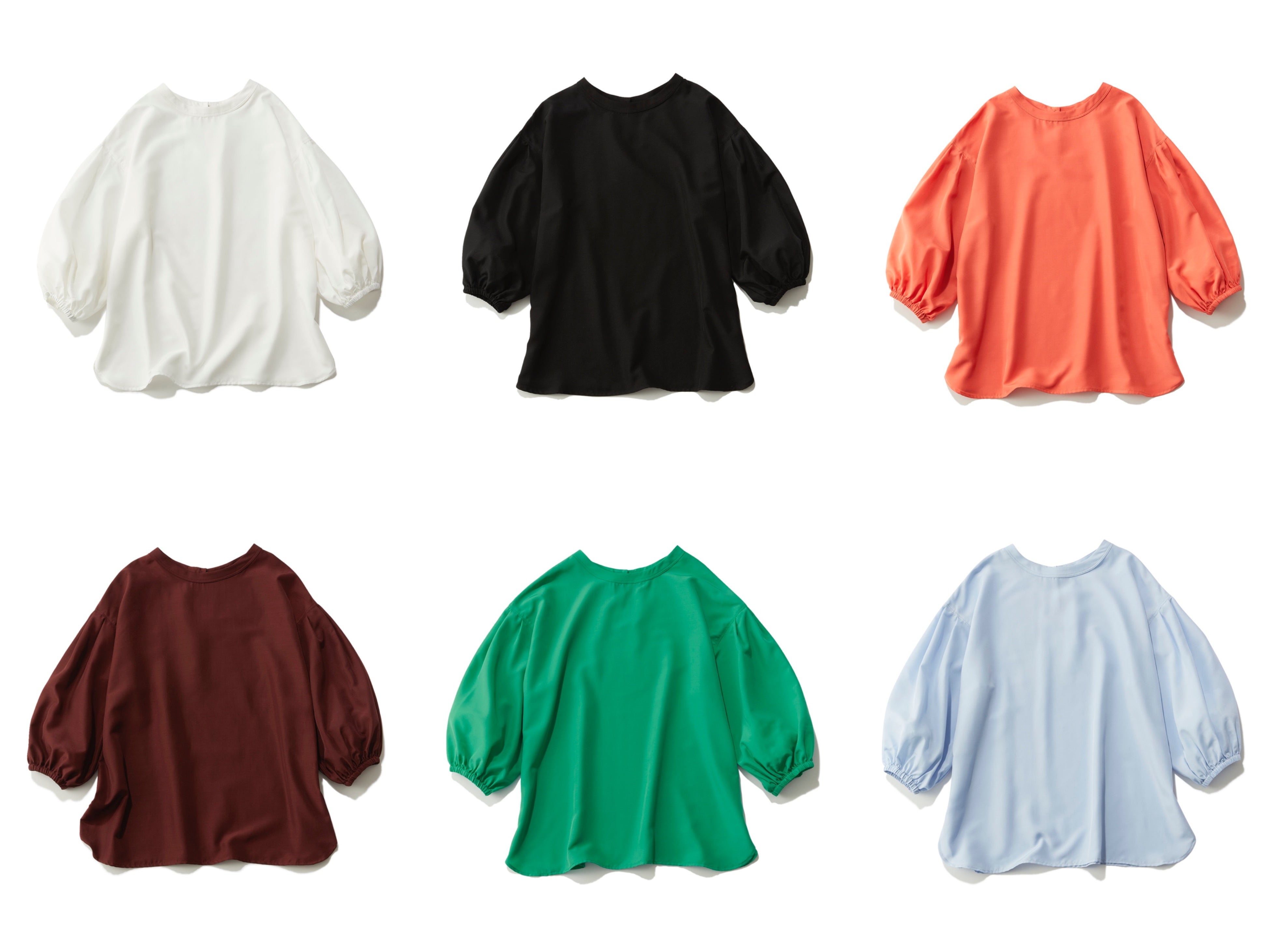 袖ボリュームデザインが女性らしい印象のデザインブラウス。シンプルなデザインですが丸みのある裾で女性らしさが更に引き立ち、着るだけで様になります。前後どちらでも着用でき、気分に合わせた着こなしが可能です。