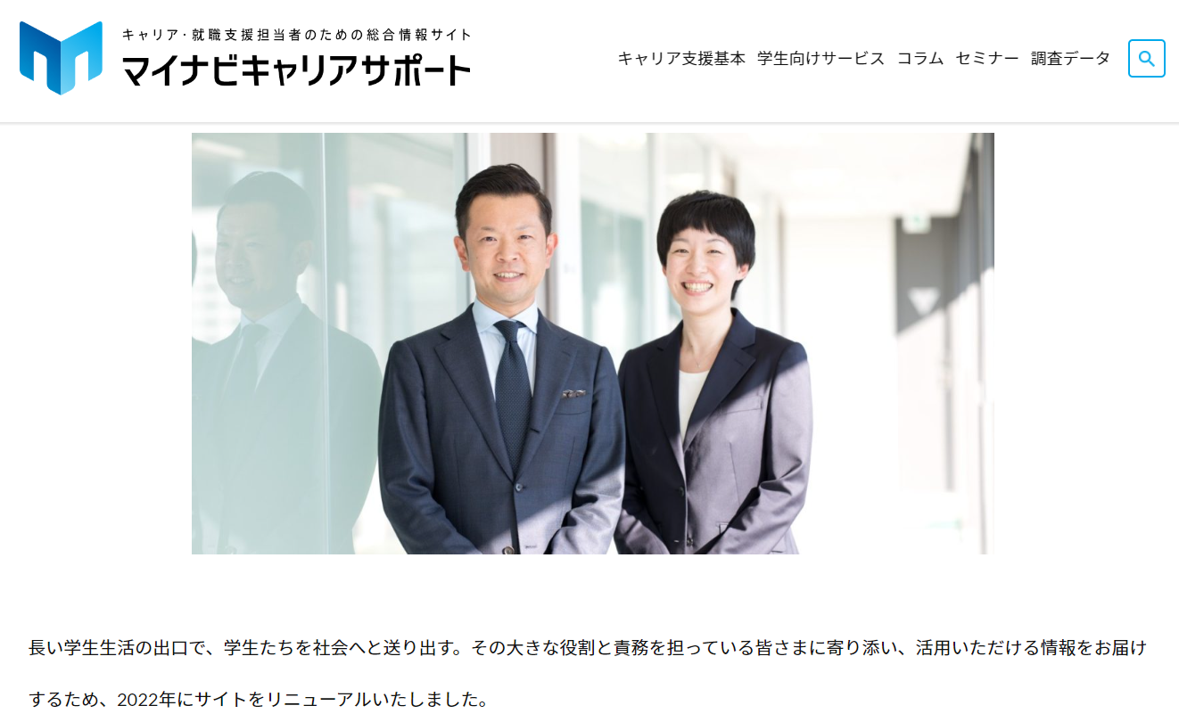 長期的なキャリア支援が求められる学校教育の情勢をふまえ、『マイナビキャリアサポート』は、学生のキャリア・就職支援に関するヒントとなるような情報提供を目指し、サイトをリニューアルオープンしました。