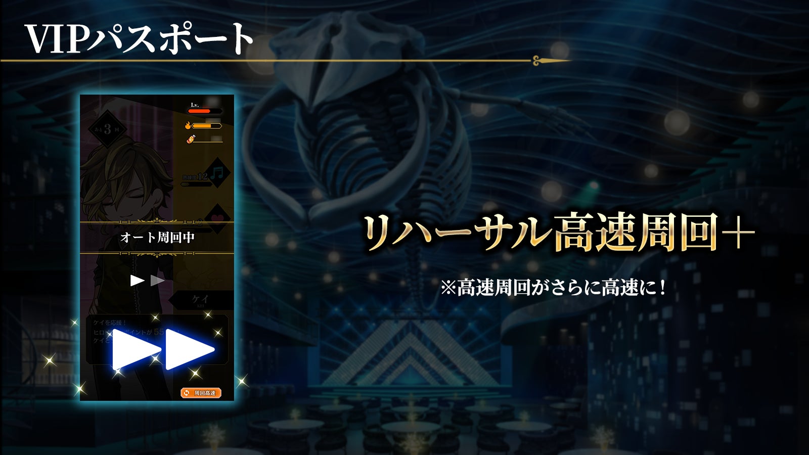 リハーサルの高速周回の速度をさらに加速させ、効率的にゲームをプレイできます。