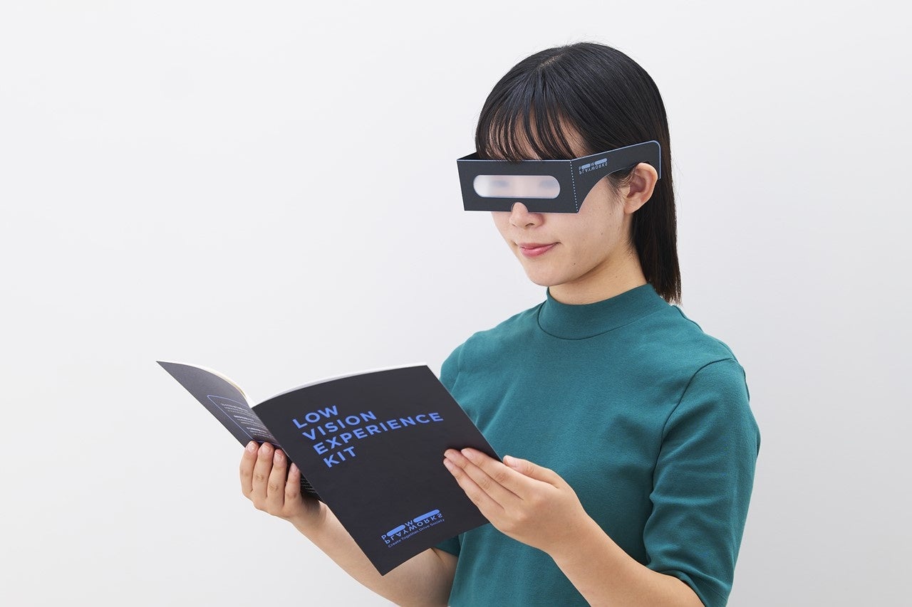 「ロービジョン体験キット」はロービジョンの見え方を疑似体験するメガネで、見えない世界を歩くためのキットです。コントラスト低下、視野狭窄、中心暗点の3つの見え方で、見えない世界を疑似体験することができます。