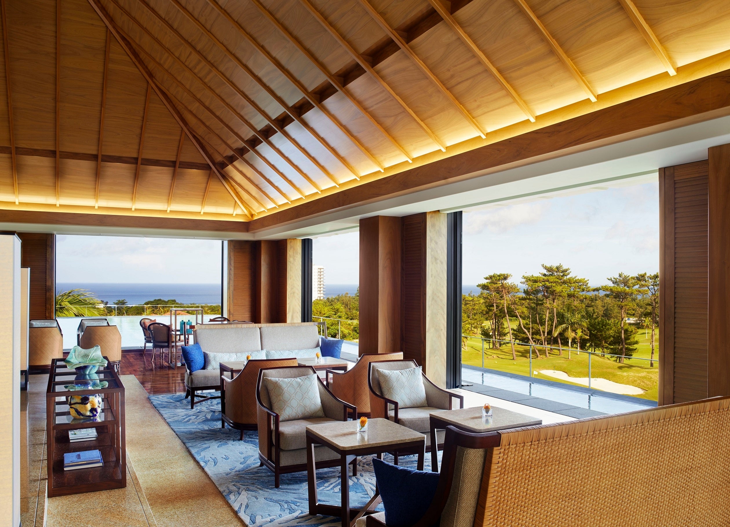 エメラルドグリーンに輝く美しい海や、眼下に広がるゴルフコースを眺めながら、沖縄の食材をふんだんに取り入れたアフタヌーンティーや旬のフルーツを使用したスイーツをお楽しみいただけます。また、アコースティックギターの音色が流れる夜のバータイムでは、沖縄の伝統を継承したクラフトリカーから豊富なセレクションを誇るウイスキーまで、バーテンダーが厳選したスピリッツをお楽しみいただけます。