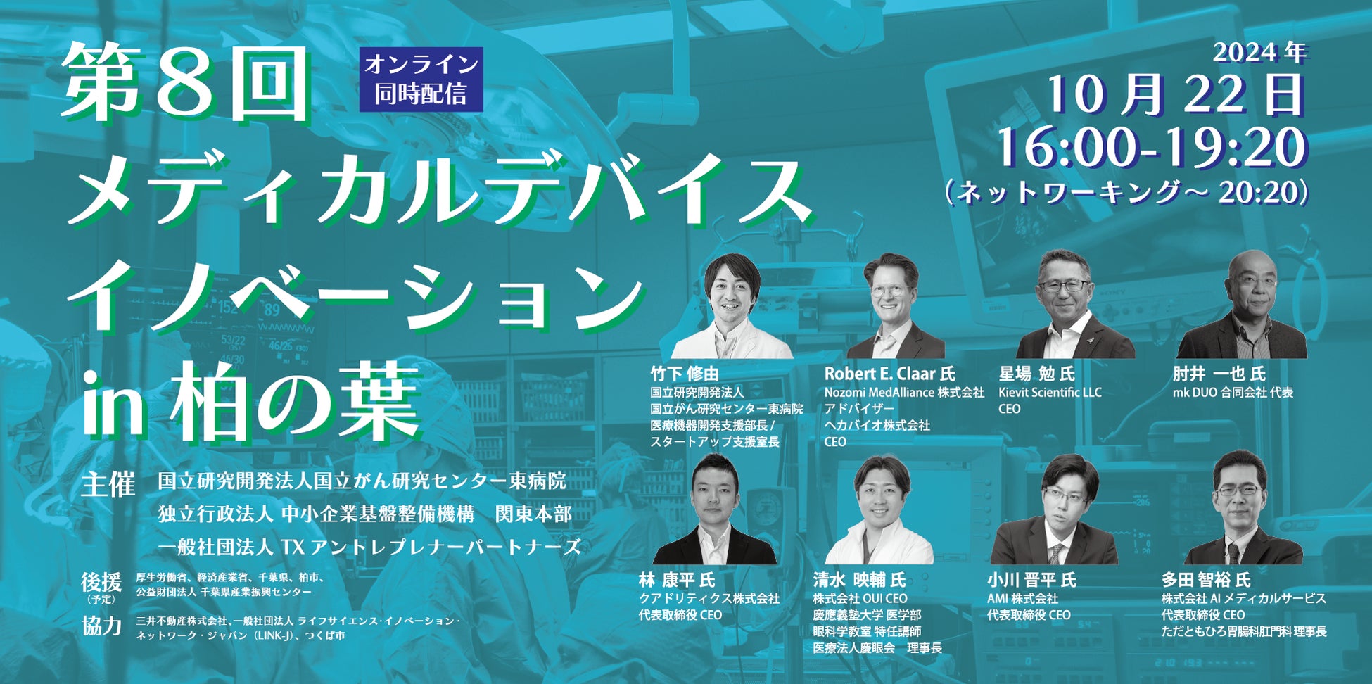 中小機構(独立行政法人中小企業基盤整備機構)関東本部は、国立研究開発法人国立がん研究センター東病院、一般社団法人TXアントレプレナーパートナーズとともに、10月22日(火曜)、「第8回 メディカルデバイスイノベーション in 柏の葉」をKOIL(柏の葉オープンイノベーションラボ)にて開催します。